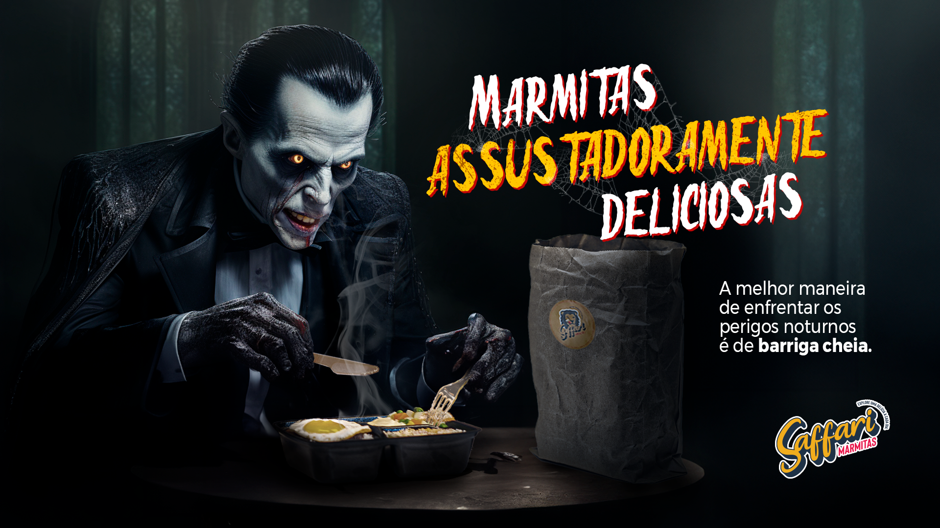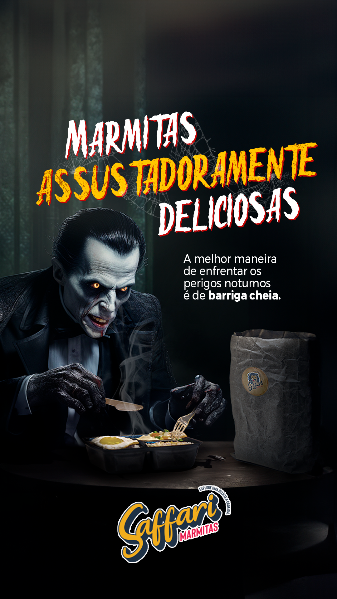 Campaign produced for the Saffari brand. The central focus of the campaign is to highlight the frightening flavor of the lunchboxes sold by the brand. The great Dracula couldn't resist the delicious food and decided to satisfy his nighttime hunger with Saffari!