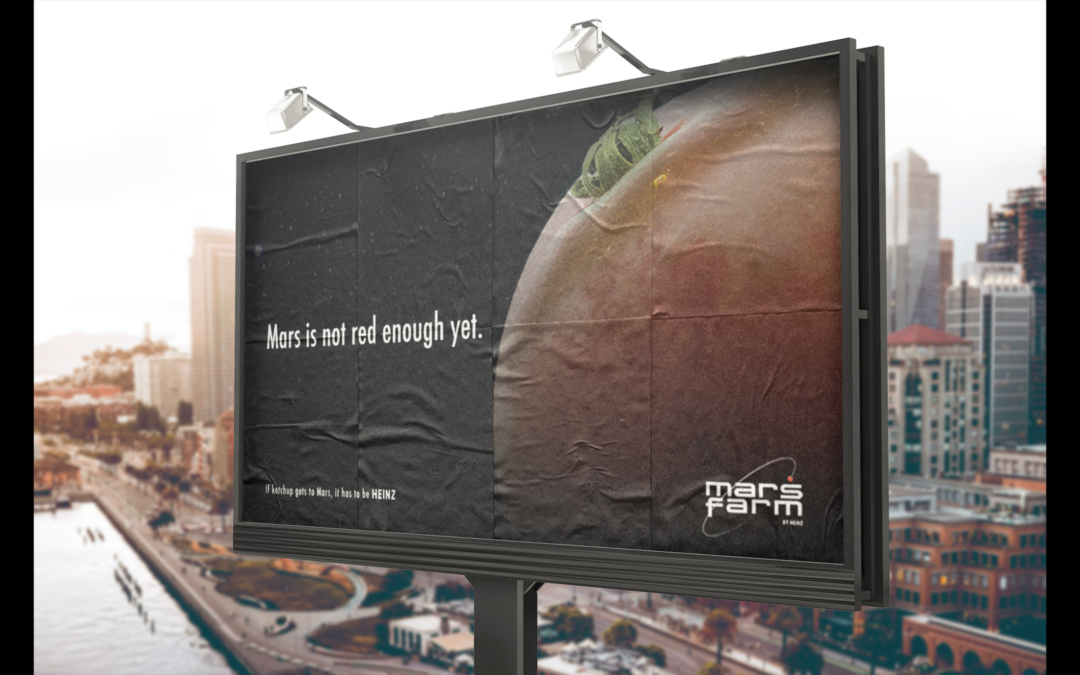 This student campaign titled 'Mars Farm' was published in Spain in January, 2019. It was created for the brand: Heinz, by ad school: Miami Ad School. This Integrated medium campaign is related to the Food industry and contains 2 media assets. It was submitted about 6 years ago by Art Director: Ignacio Gonzalez Sbiglio of Miami Ad School Madrid.
