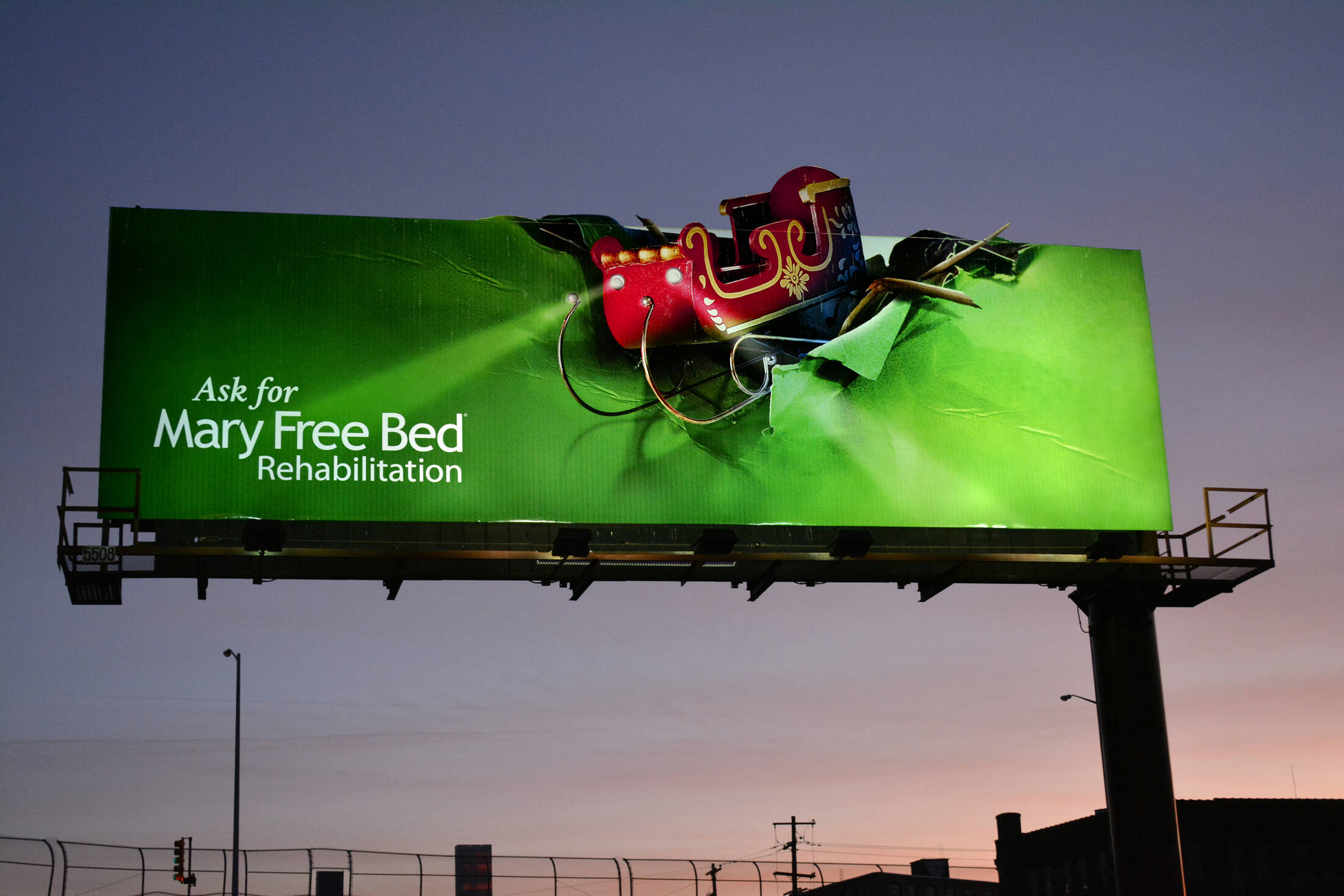This professional campaign titled 'Mary Free Bed Sleigh' was published in United States in November, 2017. It was created for the brand: Mary Free Bed Rehabilitation Hospital, by ad agency: Extra Credit Projects. This OOH Outdoor medium campaign is related to the Health industry and contains 1 media asset. It was submitted almost 8 years ago.