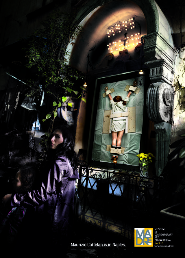 This professional campaign titled 'Maurizio Cattelan, Damien Hirst' was published in Italy in January, 2011. It was created for the brand: Museum MADRE, by ad agency: Yes I AM. This Print medium campaign is related to the Recreation, Leisure industry and contains 2 media assets. It was submitted almost 15 years ago.