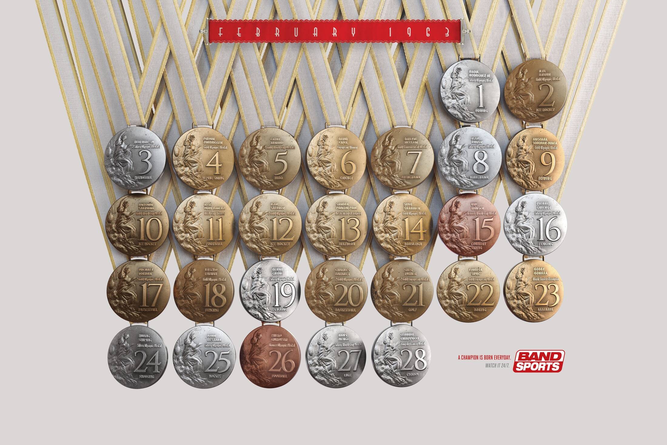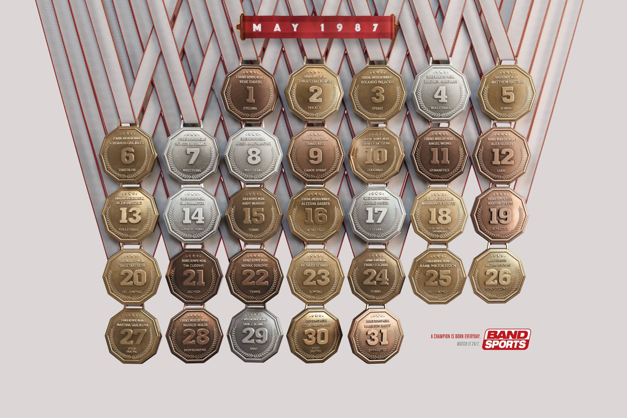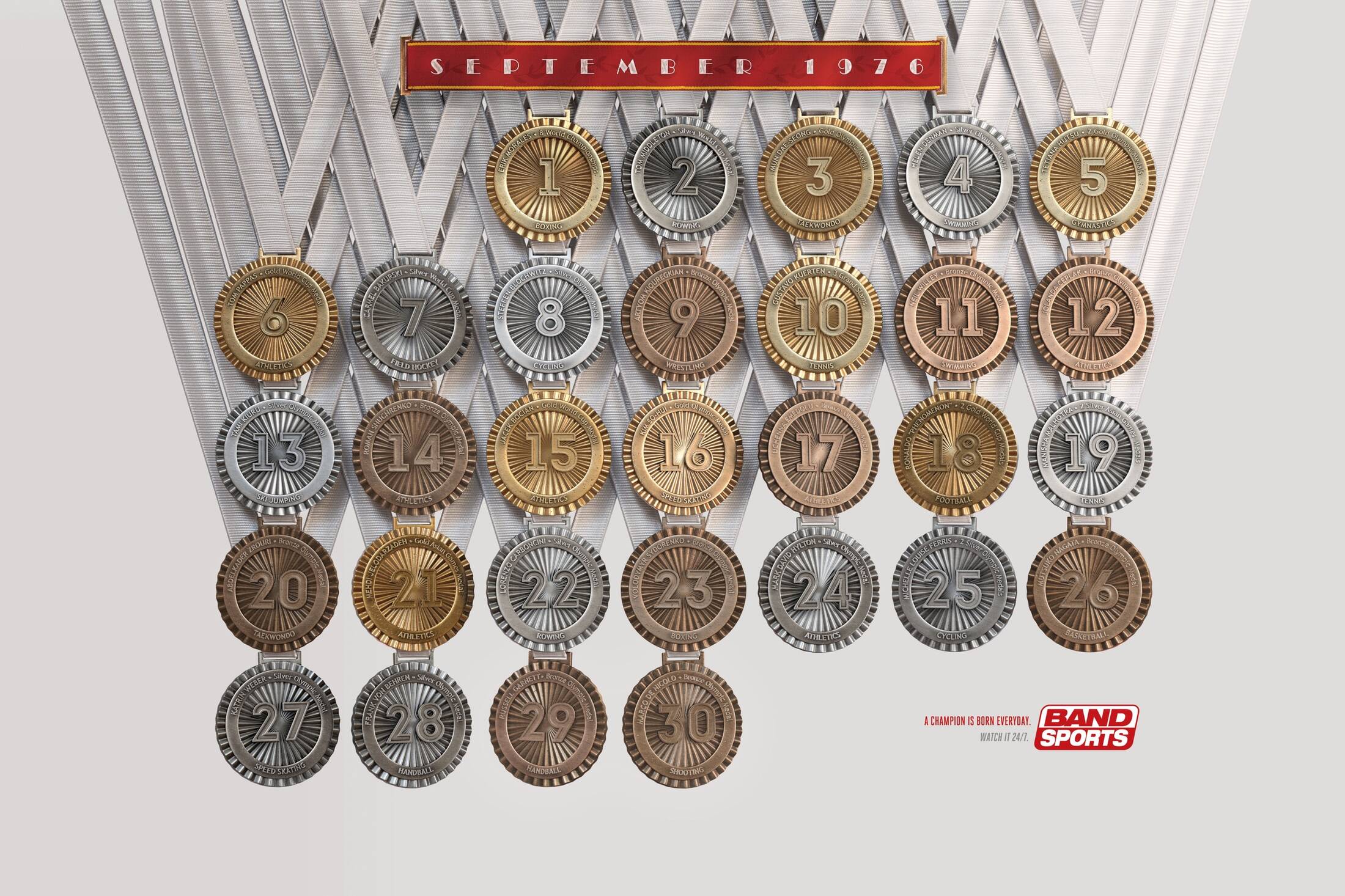 Brazil was the world soccer champion five times, but does not practice other olympic sports so often. But this year there is something totally new happening: it is the first time in history that Brazil is going to host the Olympics. A champion is born everyday. Watch it 24/7. We found through the search that some months in history had champion athletes born every day, and used this insight to promote BandSports 24/7 broadcast. Inviting viewers to follow the best Olympic Sports and not miss the chance to see a new champion.