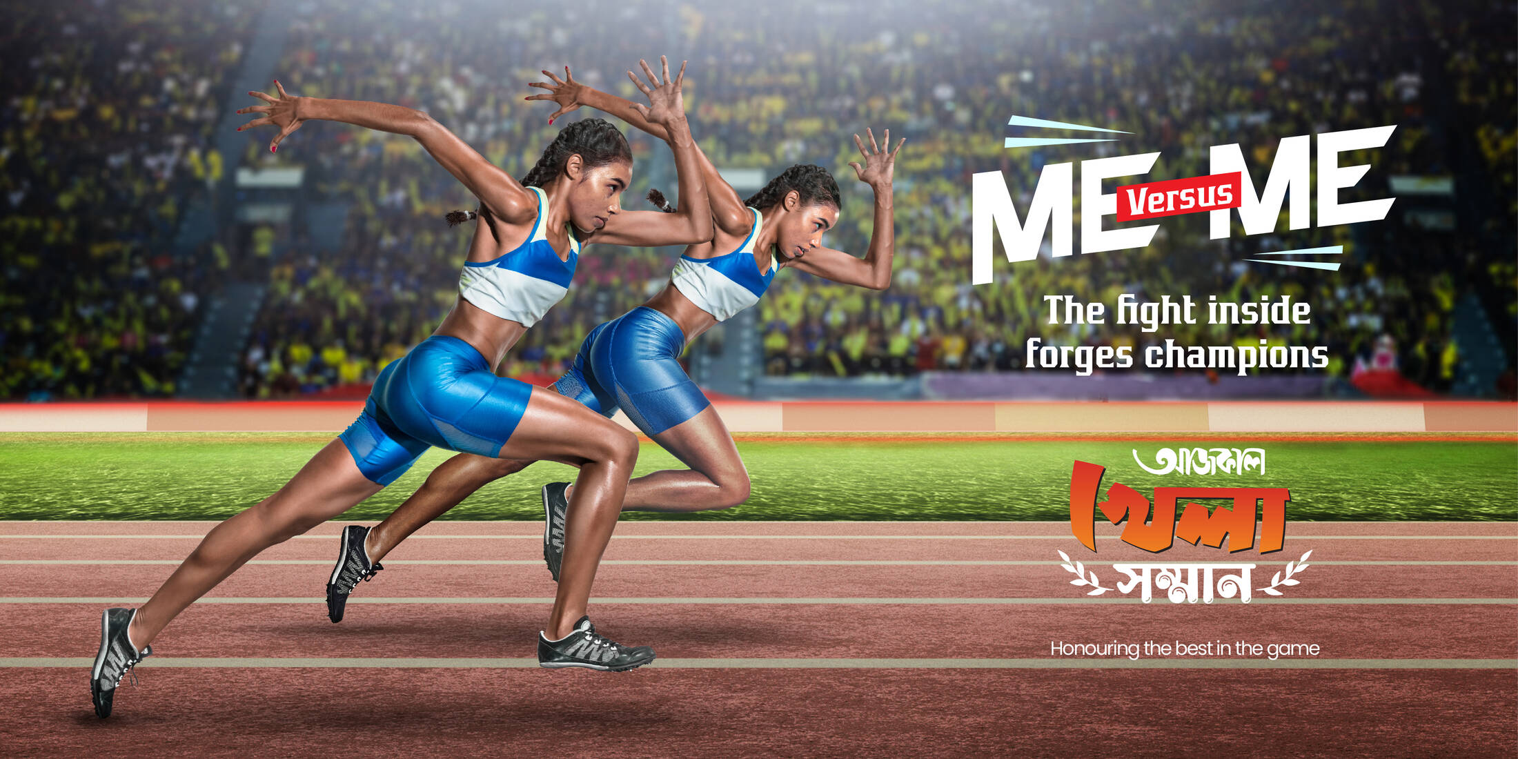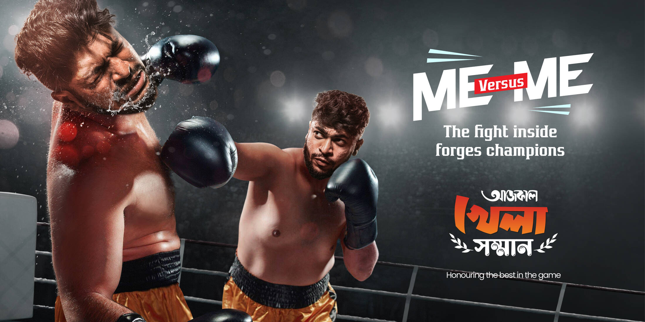 Aajkal, one of the most renowned Bengali Newspapers in West Bengal, hosted 'Khela Shamman' (translates: Sportsman Awards) to felicitate all the budding as well as the greatest sports persons of all time within the state. To promote this Award Ceremony, we came up with a campaign - ME VERSUS ME.