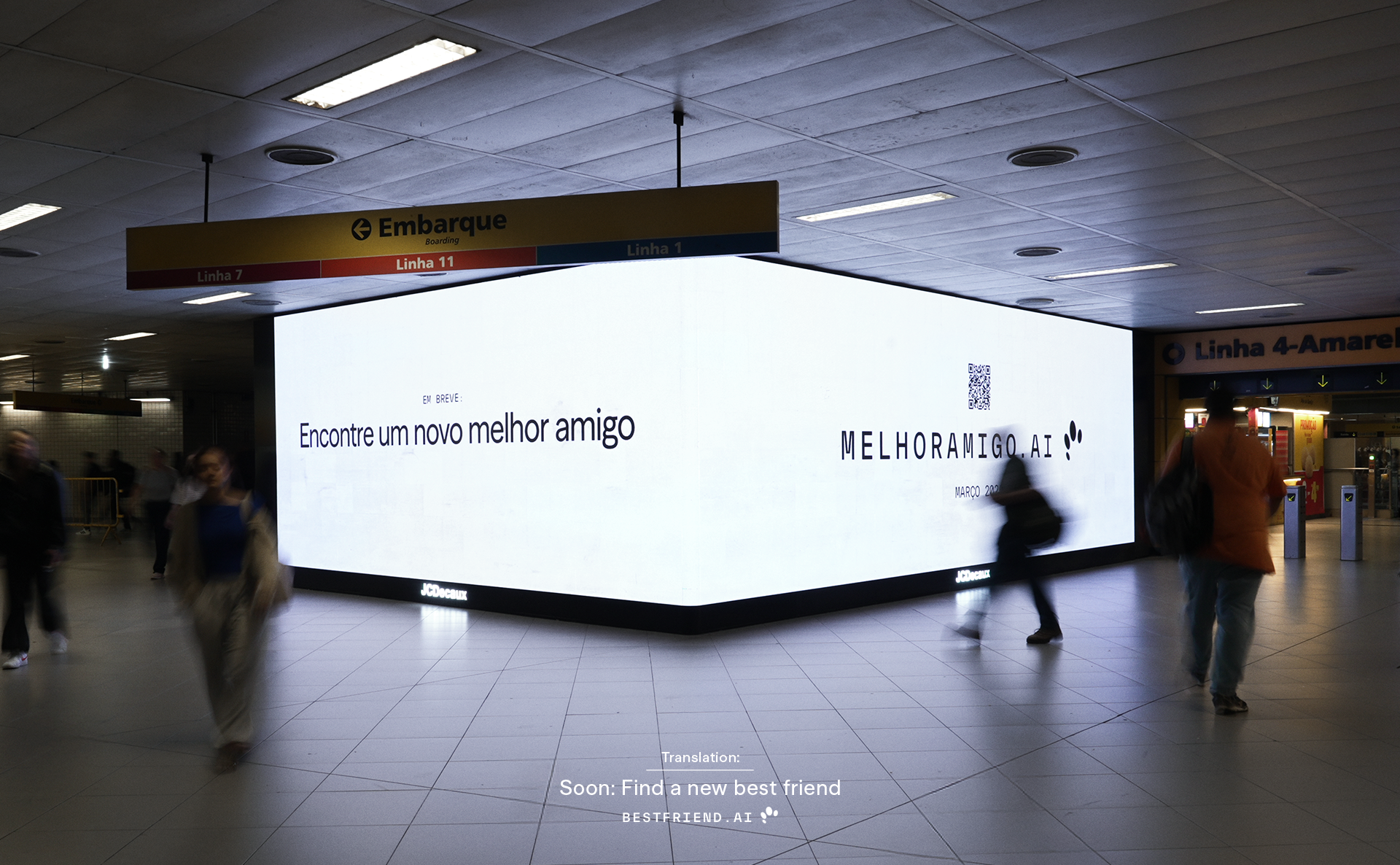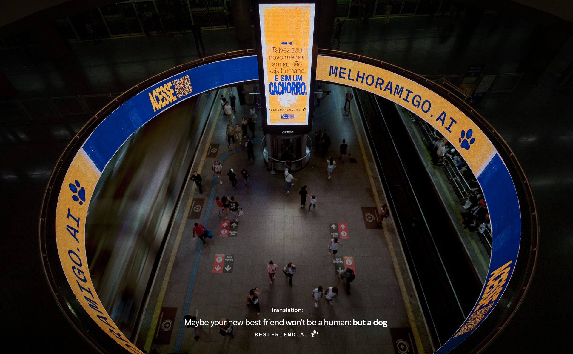 The initial phase of the campaign rolled out a series of striking, black-and-white pieces across some of São Paulo’s busiest and most iconic locations, including the Sé and Luz stations and bus shelters on Avenida Faria Lima and Avenida Paulista, as well as online content – all without the brand’s name attached. This approach sparked the public’s curiosity by announcing the rollout of a mysterious artificial intelligence service promising to help people find their new best friend.
