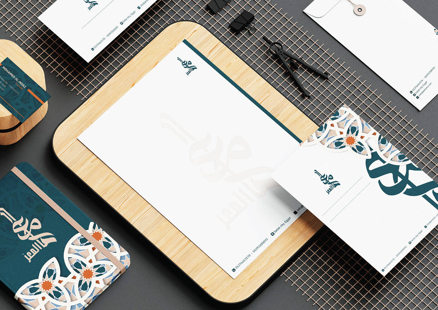 Therefore, we have taken into account the creation of a logo for the company that clarifies the name and highlights it, and we used Arabic calligraphy specifically for that.