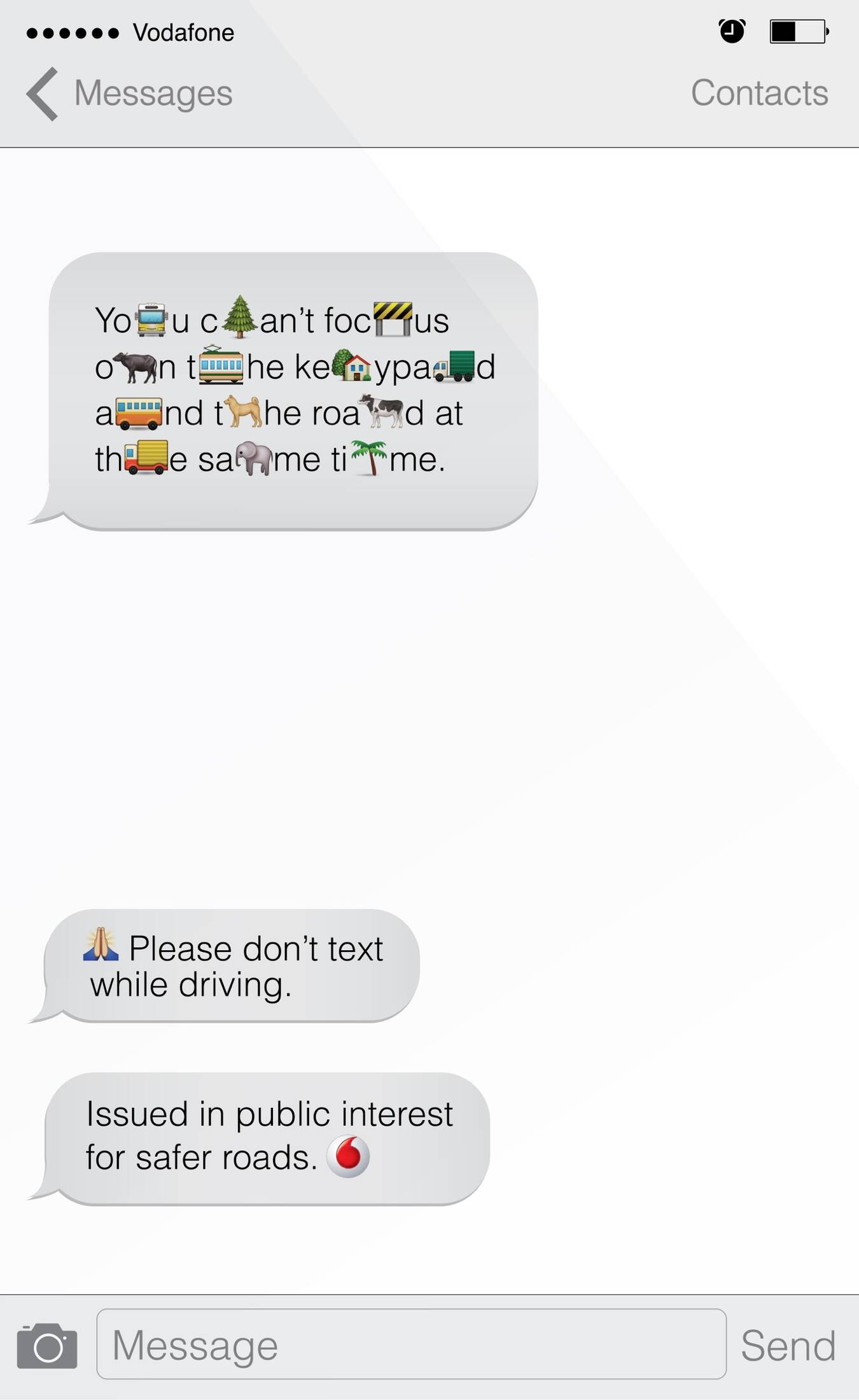 This professional campaign titled 'Message' was published in India in April, 2014. It was created for the brand: Vodafone, by ad agency: Ogilvy. This Print medium campaign is related to the Electronics, Technology industry and contains 3 media assets. It was submitted over 11 years ago.
