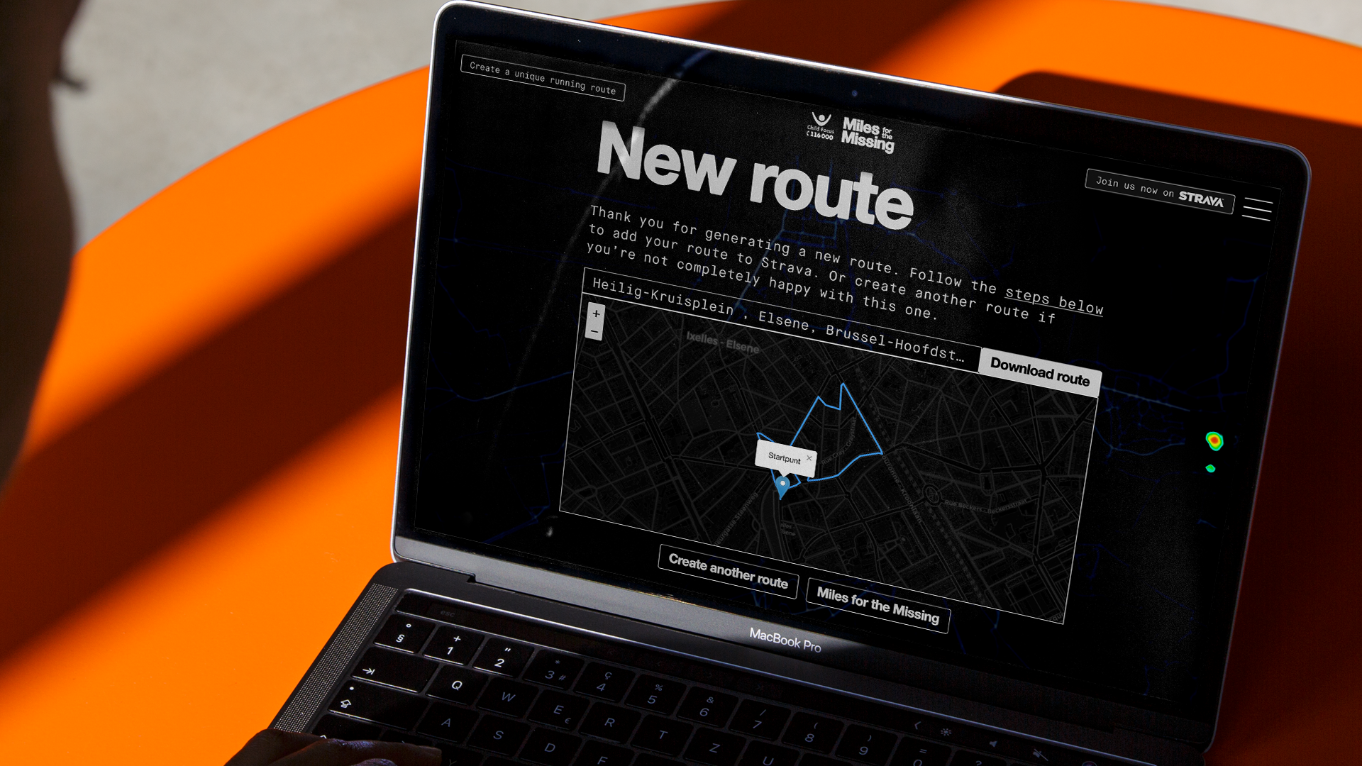 But what makes Miles for the Missing different from a campaign is that it doesn't end. The Strava club is a permanent channel. When a child goes missing, Child Focus sends a notification directly to members' smartphones. Runners can also generate personalised routes via the Miles for the Missing platform, built on the Strava heatmap and enriched with AI-guided waypoints like bus stops, train stations, and gas stations, the places where missing children are most likely to be spotted.