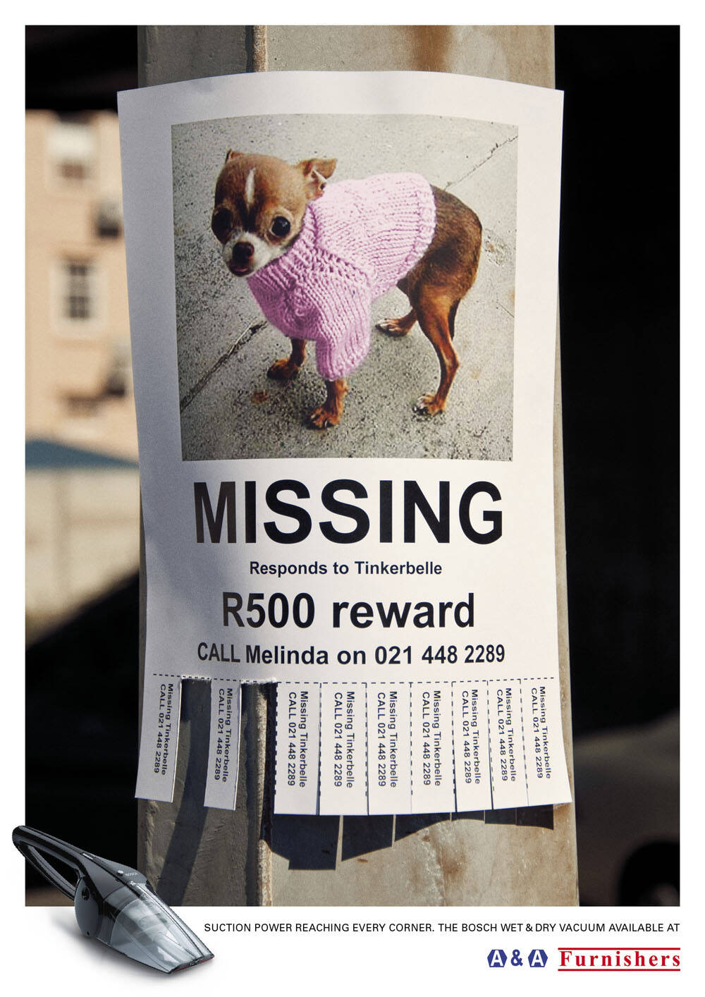 This professional campaign titled 'Milly, Blossom, Tinkerbelle' was published in South Africa in April, 2012. It was created for the brand: A&A Furnishers, by ad agency: Canvas. This Print medium campaign is related to the House, Garden industry and contains 3 media assets. It was submitted over 13 years ago.