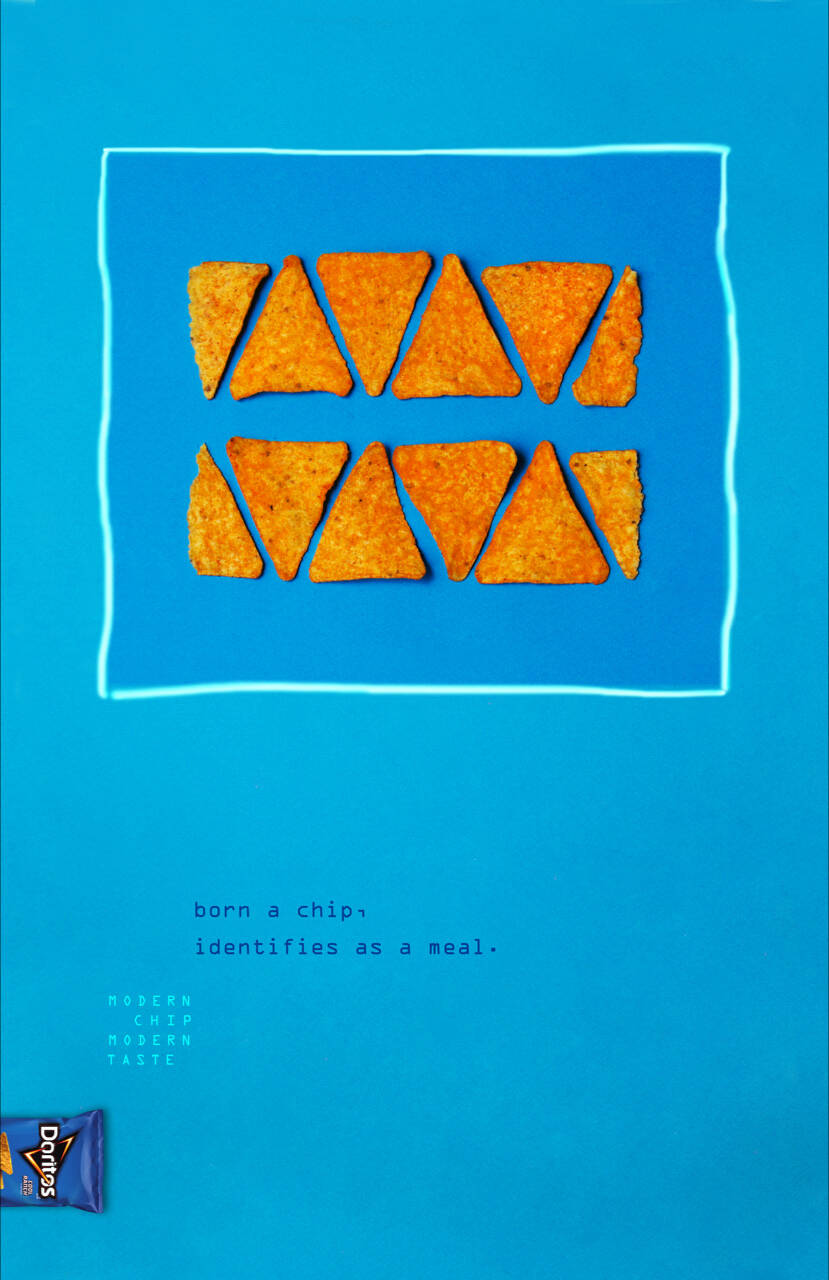 This student campaign titled 'Modern Chip' was published in United States in January, 2018. It was created for the brand: Doritos, by ad school: Otis College of Art and Design. This Print medium campaign is related to the Confectionery, Snacks industry and contains 3 media assets. It was submitted almost 8 years ago.