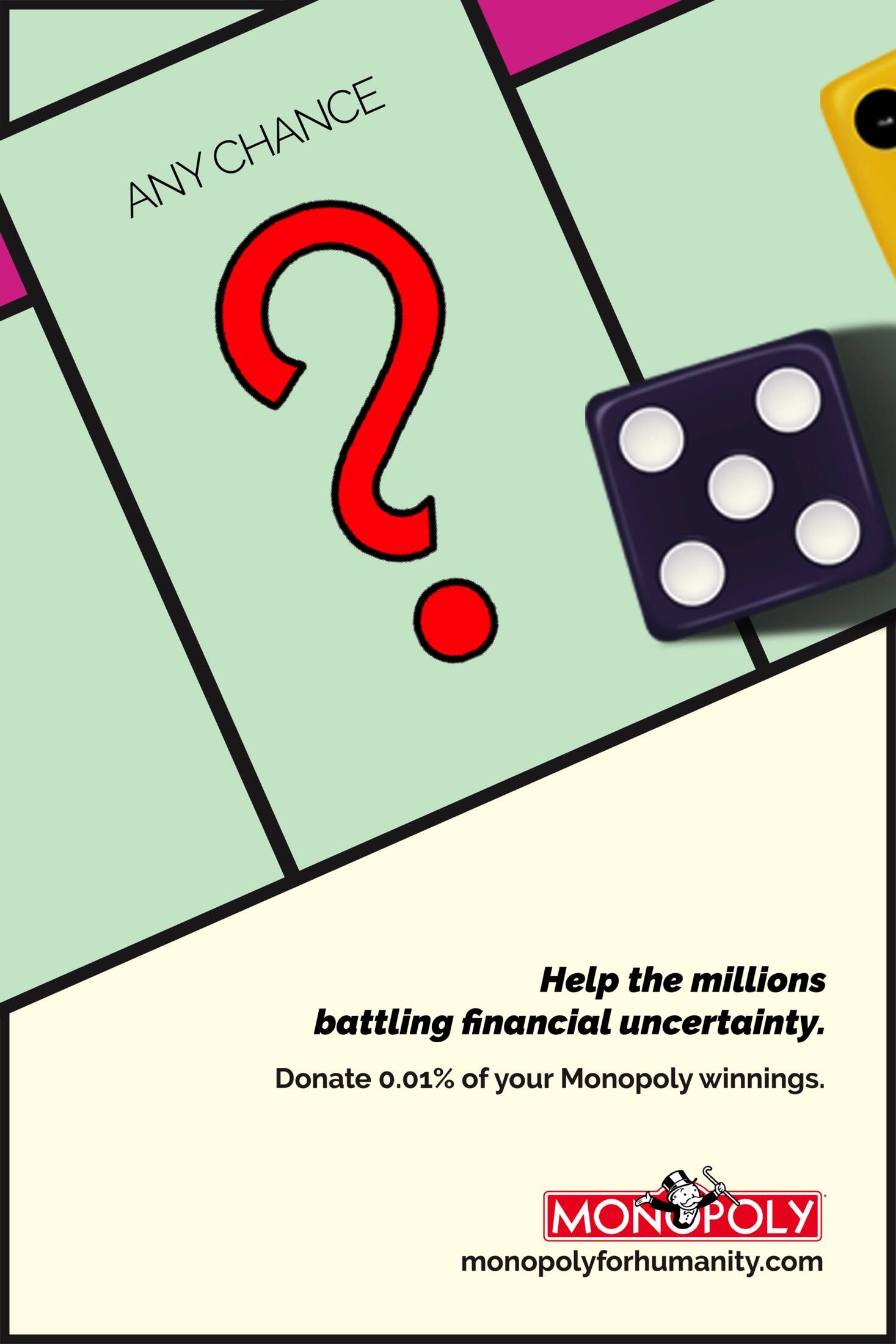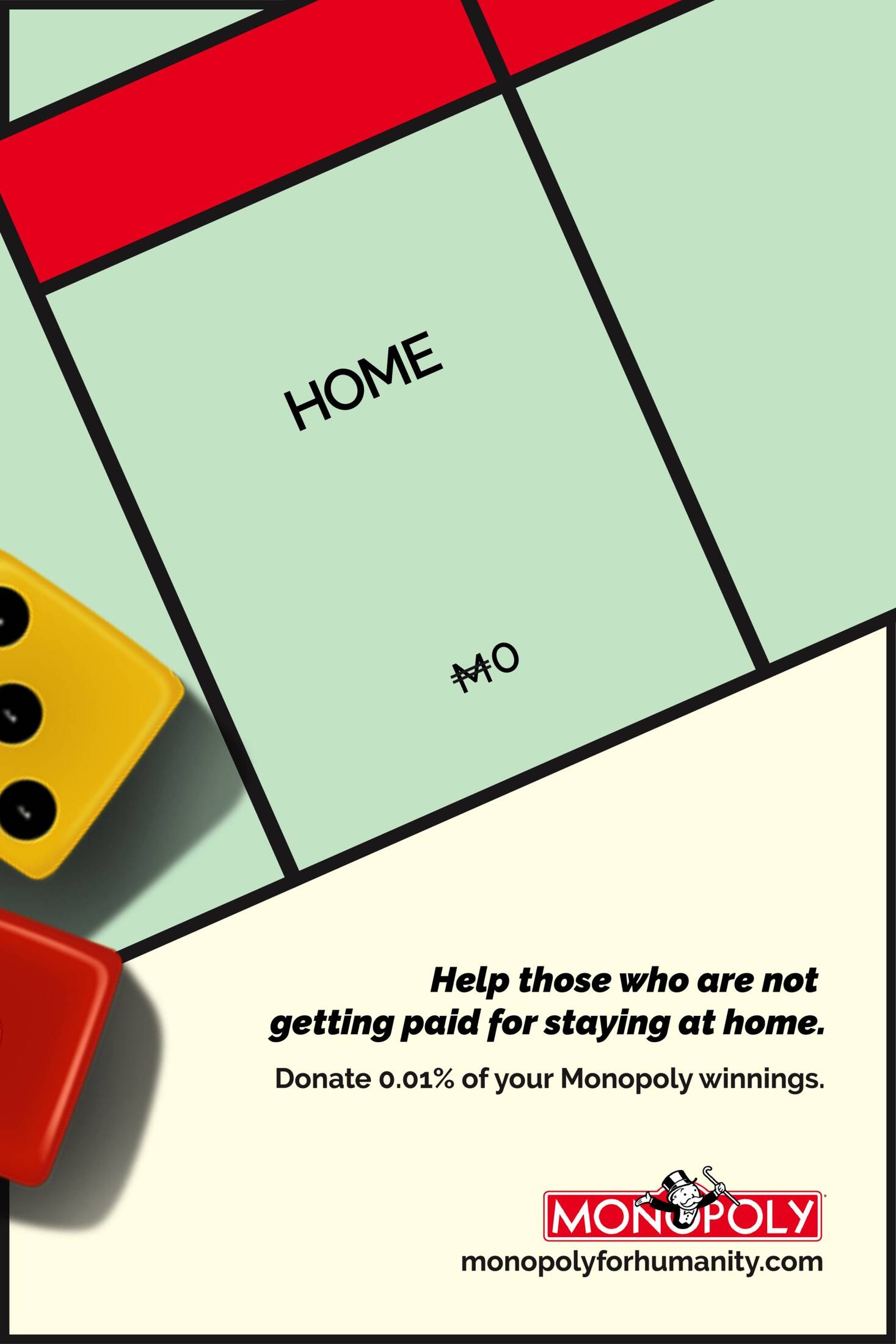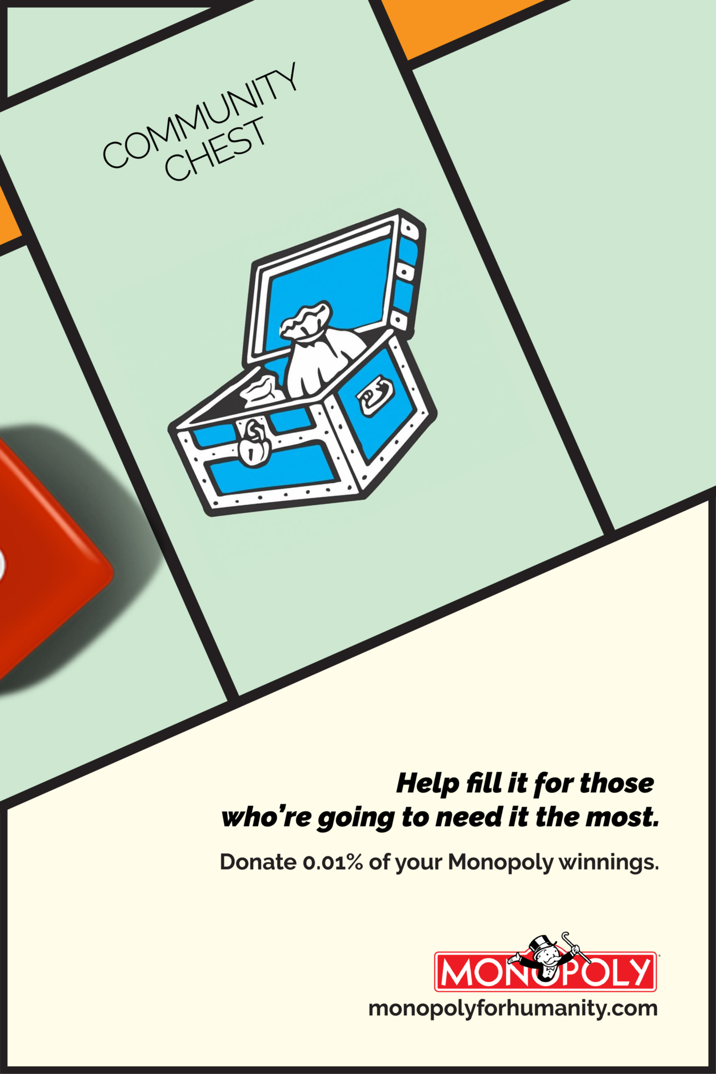Monopoly for Humanity is an initiative that uses the highly popular board game to remind people to donate to those who are financially affected by the coronavirus. It encourages people to simply donate 0.01% of their Monopoly winnings' worth after each game. For more information, visit https://monopolyforhumanity.com/