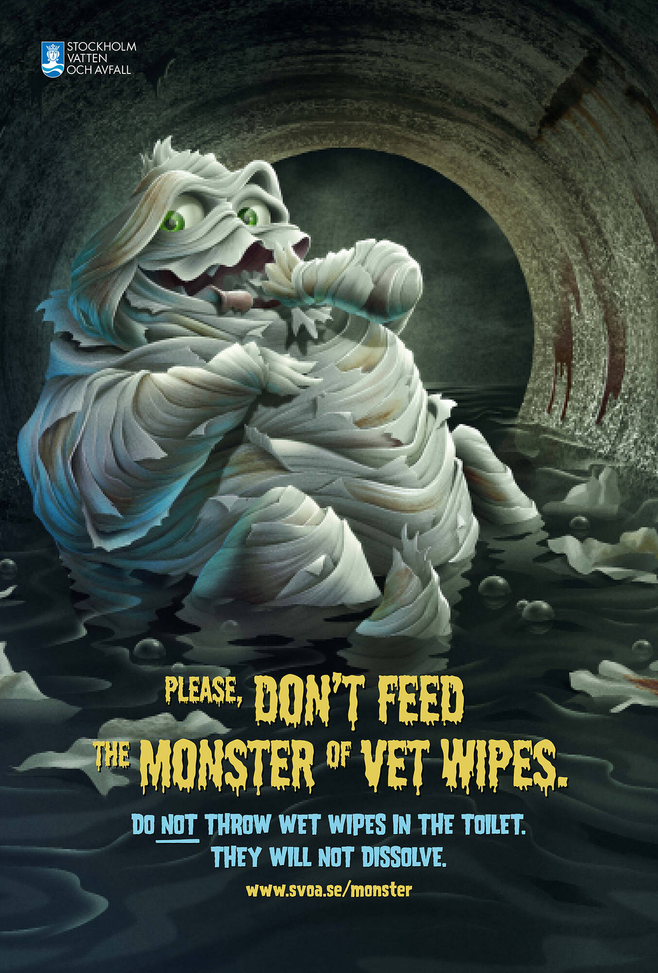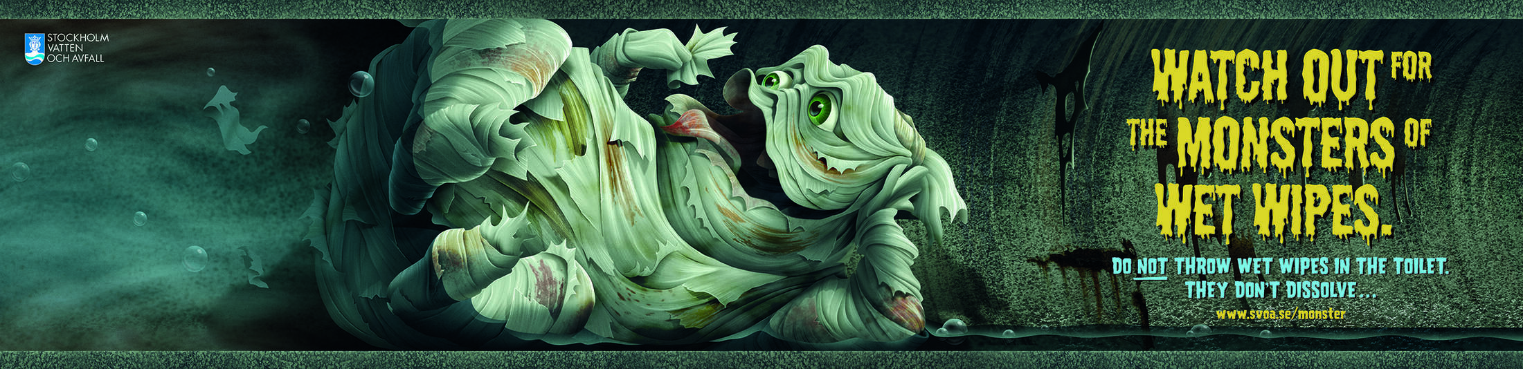 In Stockholm, about 2,000 tons of trash is flushed down the drain every year. A large part consists of wet wipes that grow together with grease and other trash, and eventually form large monsters of fat and wipes. To make Stockholmers understand that, we unleashed a real monster campaign.