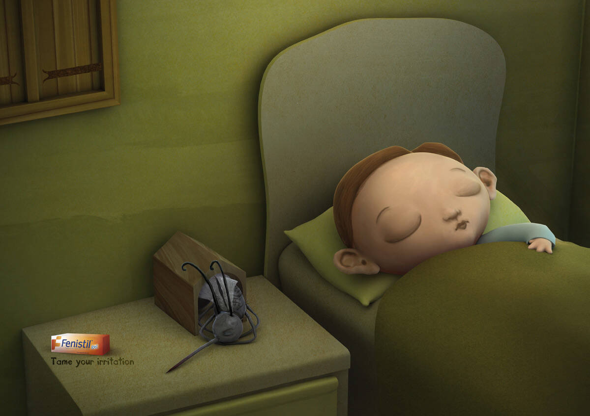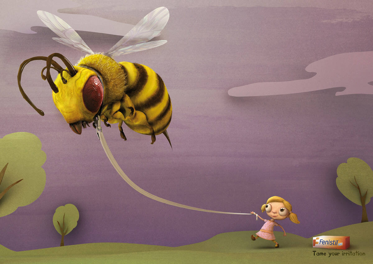 This professional campaign titled 'Mosquito, Caterpillar, Bee, Ant' was published in Switzerland in April, 2009. It was created for the brand: Fenistil, by ad agency: Saatchi & Saatchi. This Print medium campaign is related to the Pharmaceutical industry and contains 4 media assets. It was submitted over 16 years ago.