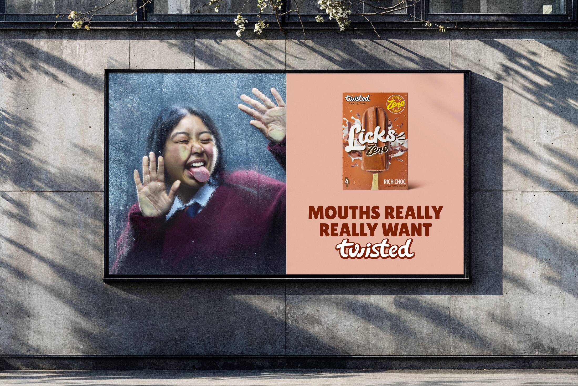 This professional campaign titled 'Mouths really really want Twisted ' was published in Australia in October, 2025. It was created for the brand: Twisted Healthy Treats, by ad agency: TRP. This OOH Outdoor medium campaign is related to the Food industry and contains 7 media assets. It was submitted about 2 months ago by Head of Strategy: Kyle Ross of TRP.