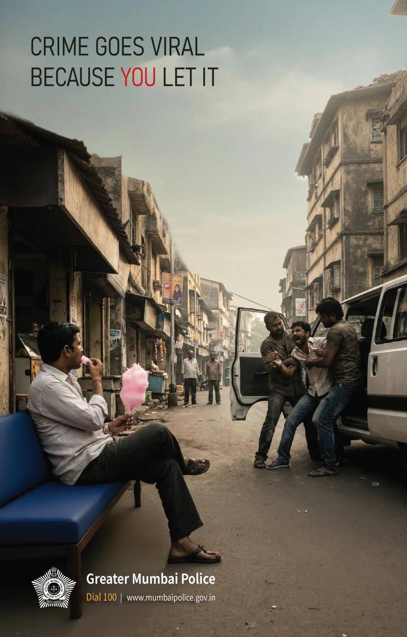 This student campaign titled 'mumbai police' was published in India in February, 2026. It was created for the brand: Police, by ad school: B.S.Bandekar College of Fine Art. This Print medium campaign is related to the Education industry and contains 3 media assets. It was submitted about 19 hours ago by Prof.: siddhesh of B.S.Bandekar College Of Fine art, Applied Art, Sawantwadi.