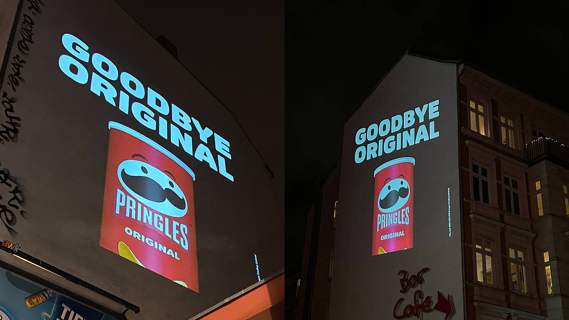 In a campaign created by INNOCEAN Berlin, the teaser started with a cryptic Instagram post bidding farewell to Pringles Original flavour, and escalated with a series of projections on prominent sites in Berlin and Hamburg and digital billboards in Vienna, reading “Goodbye, Original”.