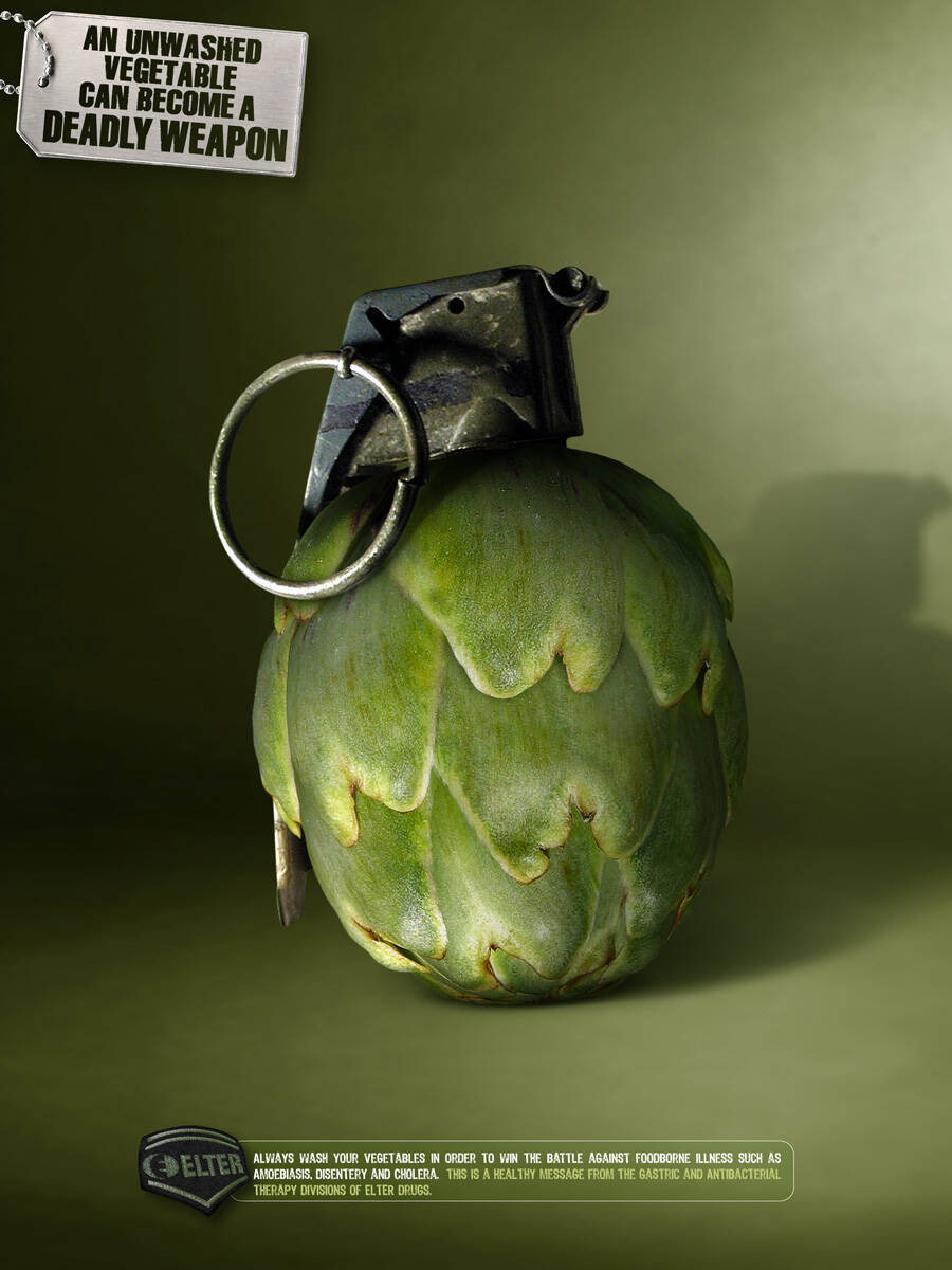 This professional campaign titled 'Mushroom, Tomato, Artichoke' was published in Venezuela in July, 2007. It was created for the brand: Elter, by ad agency: Saatchi & Saatchi. This Print medium campaign is related to the Pharmaceutical industry and contains 3 media assets. It was submitted about 17 years ago.