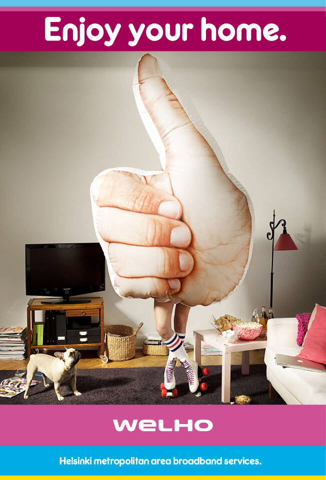 This professional campaign titled 'Music, Rollerskate' was published in Finland in October, 2010. It was created for the brand: Welho, by ad agency: 358. This Print medium campaign is related to the Electronics, Technology industry and contains 2 media assets. It was submitted about 15 years ago.