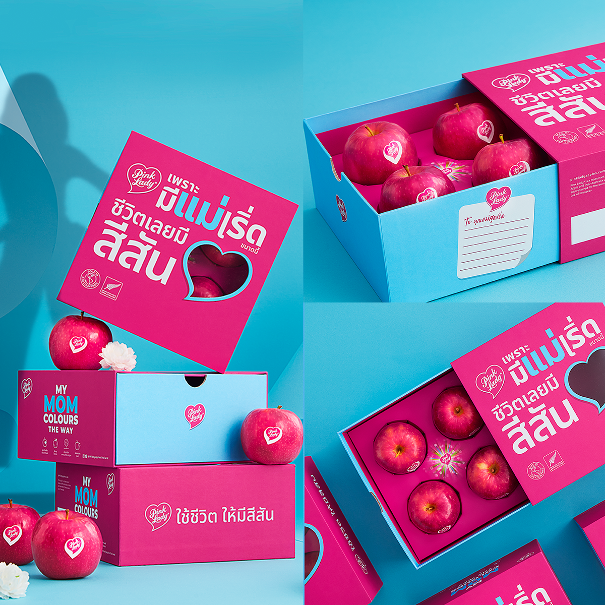 "My Mom Colours The Way" is a special packaging design project for Pink Lady apples, created for Mother's Day in Thailand. We want this packaging to act as more than just a gift — it’s a way for children to express their love and appreciation for their mothers. Instead of a typical Mother's Day card that conveys gratitude, the packaging itself becomes the message, offering something heartfelt and meaningful.