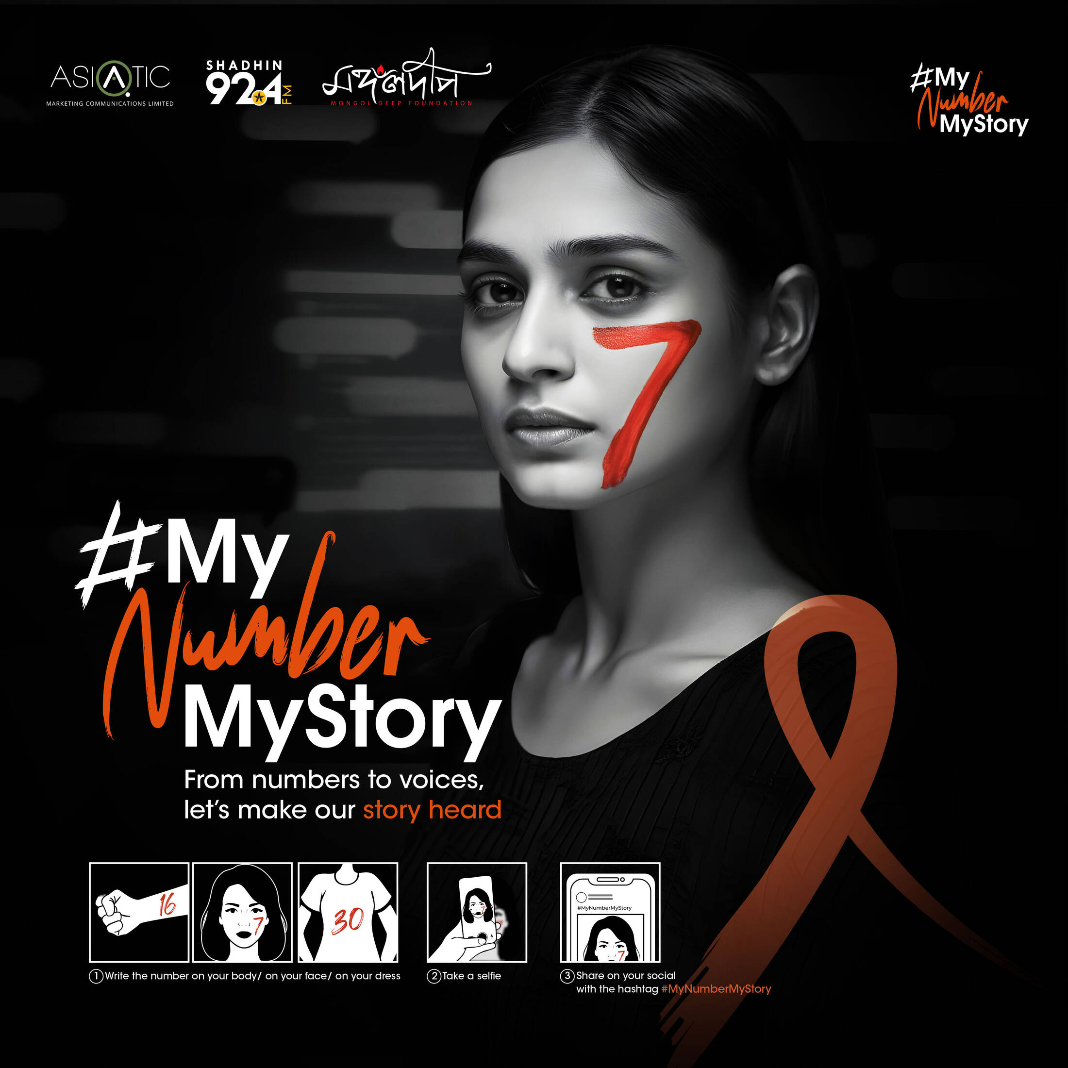 In response to this growing crisis and in line with the United Nations’ 16 Days of Activism, which highlighted digital violence against women; Asiatic Marketing Communications Ltd. and Radio Shadhin with Mongol Deep Foundation launched #MyNumberMyStory, inviting women to express how frequently they face online harassment by writing that number on their own bodies and sharing the photo with the hashtag #MyNumberMyStory.