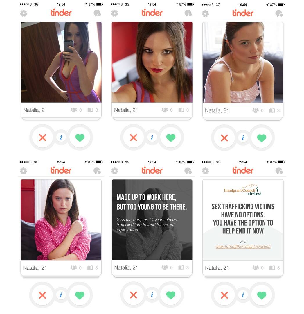 The campaign raises awareness about the crimes behind sex trafficking and prostitution, using Tinder profiles to tell stories about victims of trafficking. There are a large number of these profiles live on Tinder and with great feedback from people so far.