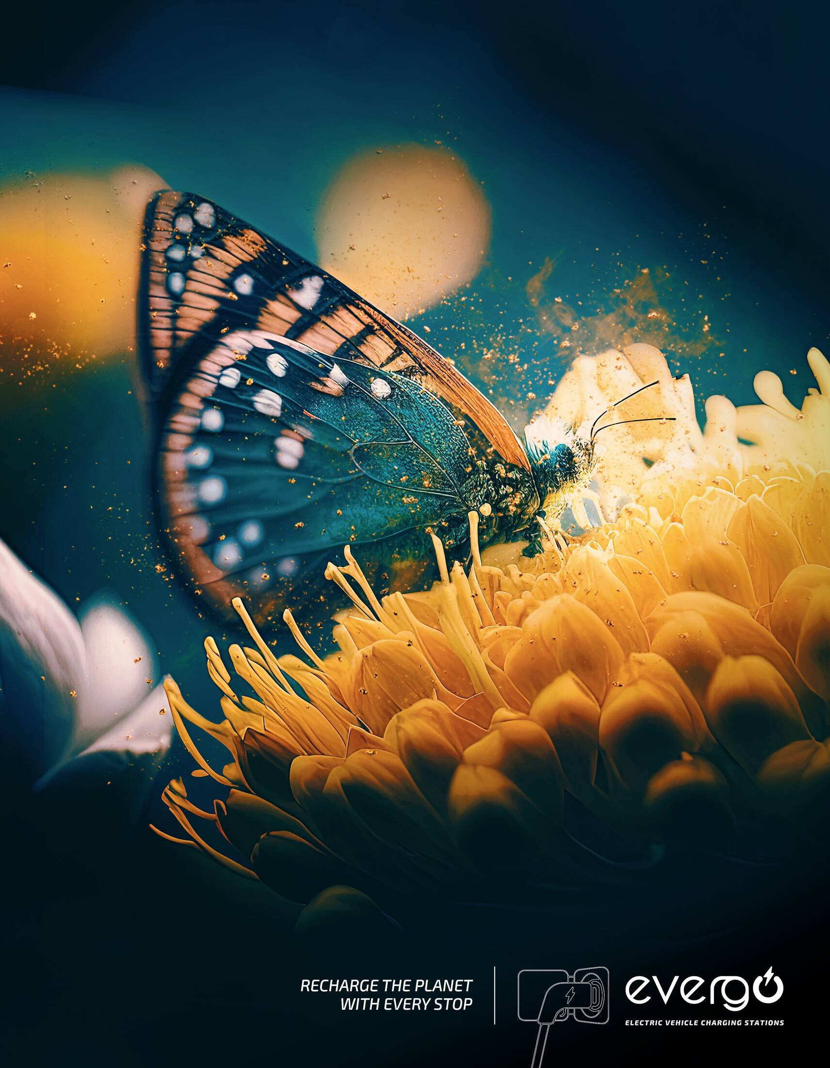 Evergo, a leading platform for electric vehicle chargers in the Dominican Republic, launched a campaign "Natural Charging Stations" in collaboration with PAGÉS BBDO. The campaign includes print ads, inspired by nature's pollination process, that highlight the connection between nature and sustainable charging. It aims to promote environmental care, sustainable mobility, and educate people about the benefits of electric mobility, using imagery of pollinators like bees, hummingbirds, and butterflies.