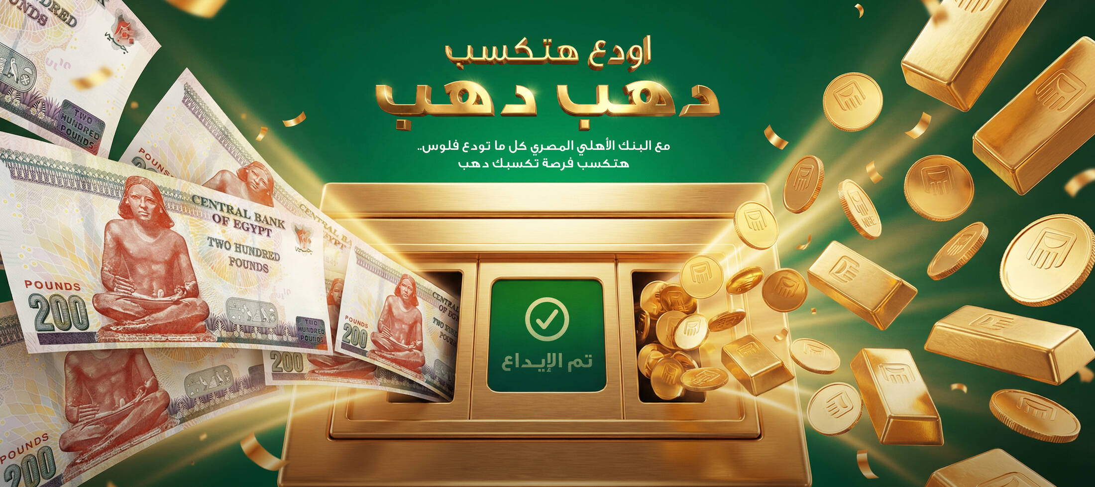 This project was created for National Bank of Egypt to promote a campaign linking higher deposits to increased chances of winning gold.