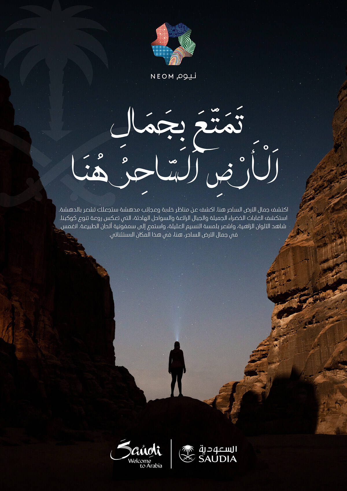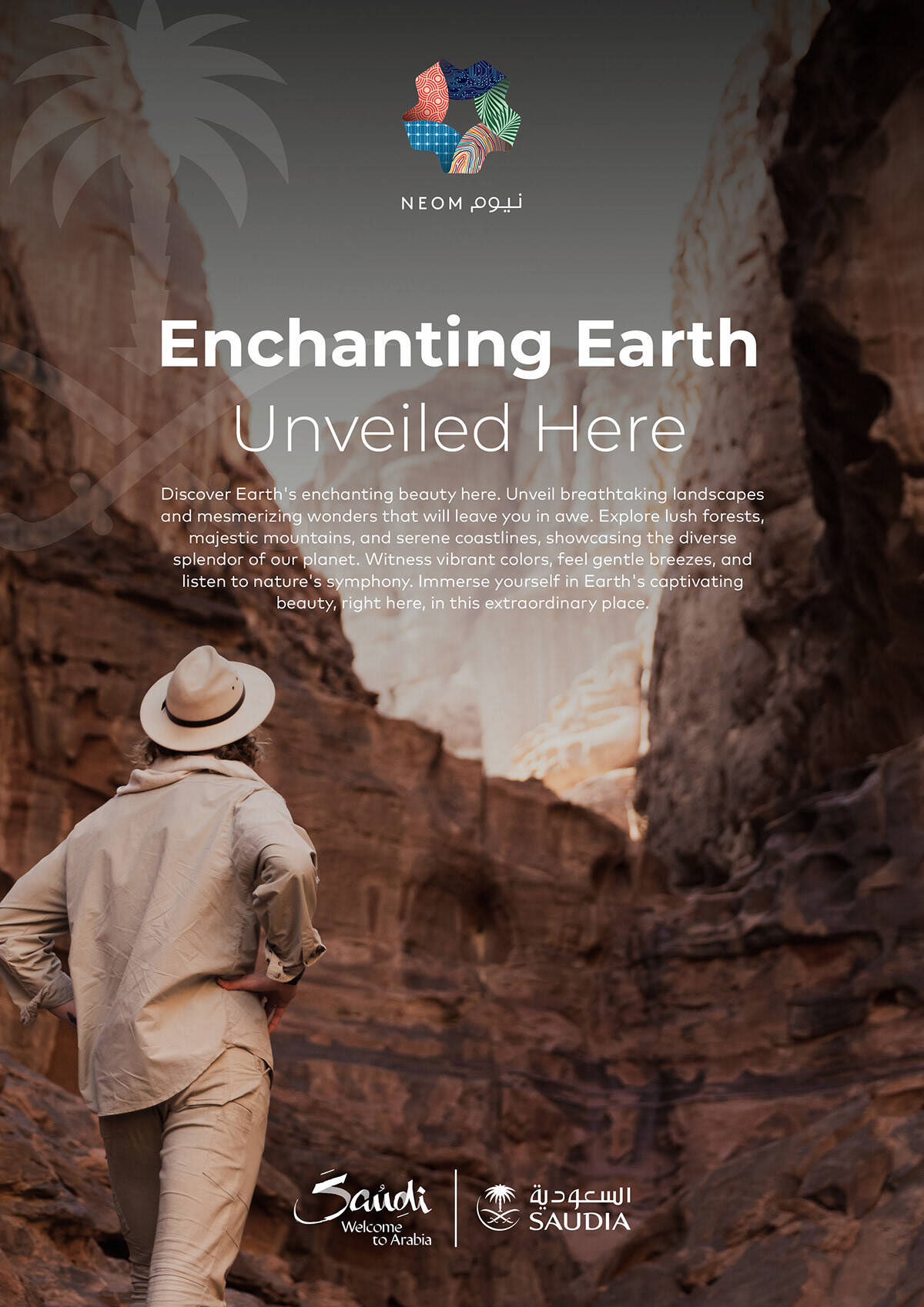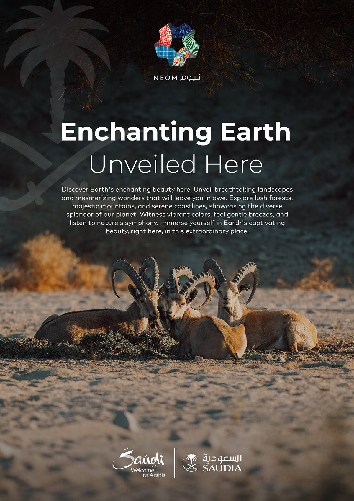 This professional campaign titled 'NEOM Saudi Arabia Vol.3' was published in Saudi Arabia in June, 2023. It was created for the brand: Neom, by ad agency: Arkan Studio. This Design, Digital, and OOH Outdoor media campaign is related to the Hospitality, Tourism, Public Interest, and Travel and Tourism industries and contains 8 media assets. It was submitted about 2 years ago by Creative / Art Director: Arkan Gahramy of Arkan Studio .