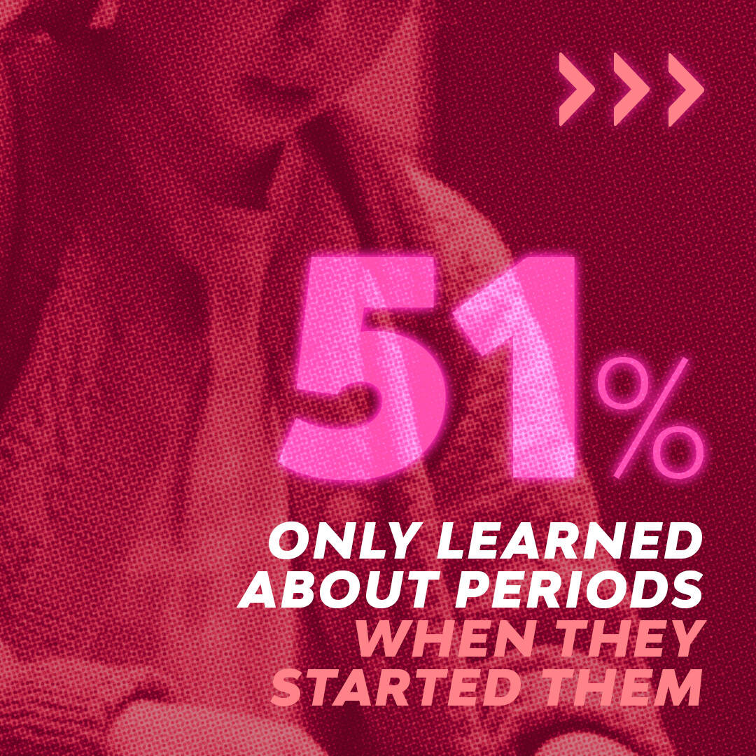 · Only 1 in 5 of those who menstruate felt ‘calm and ready’ to start their first period;