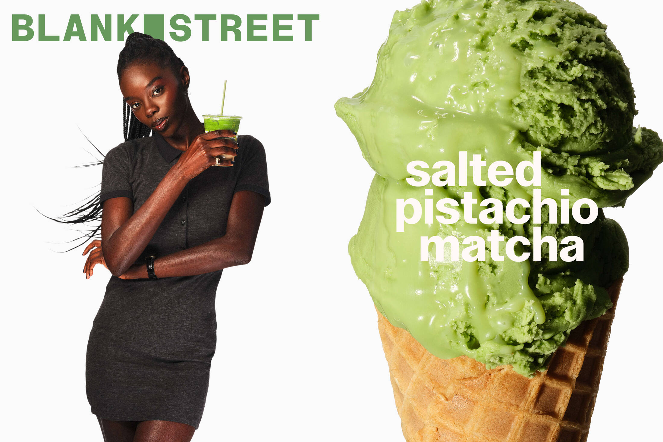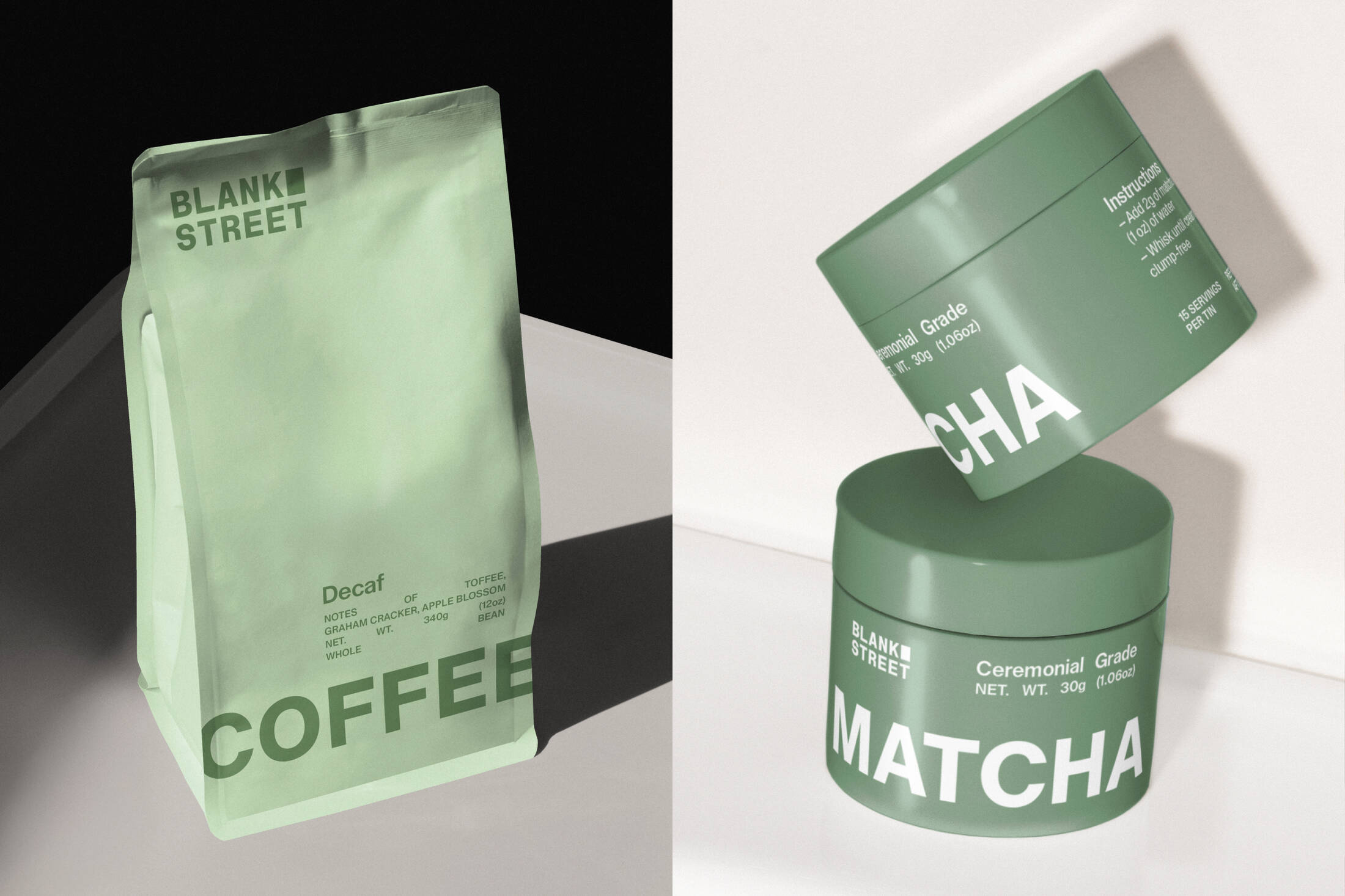 A refined “Blank Street Green” - a lush, unmistakable green hue and is now accompanied by an extensive, secondary palette of greens aptly named after times of day, a nod to the different colours a Blank Street cup takes on in morning, afternoon, and evening light.
