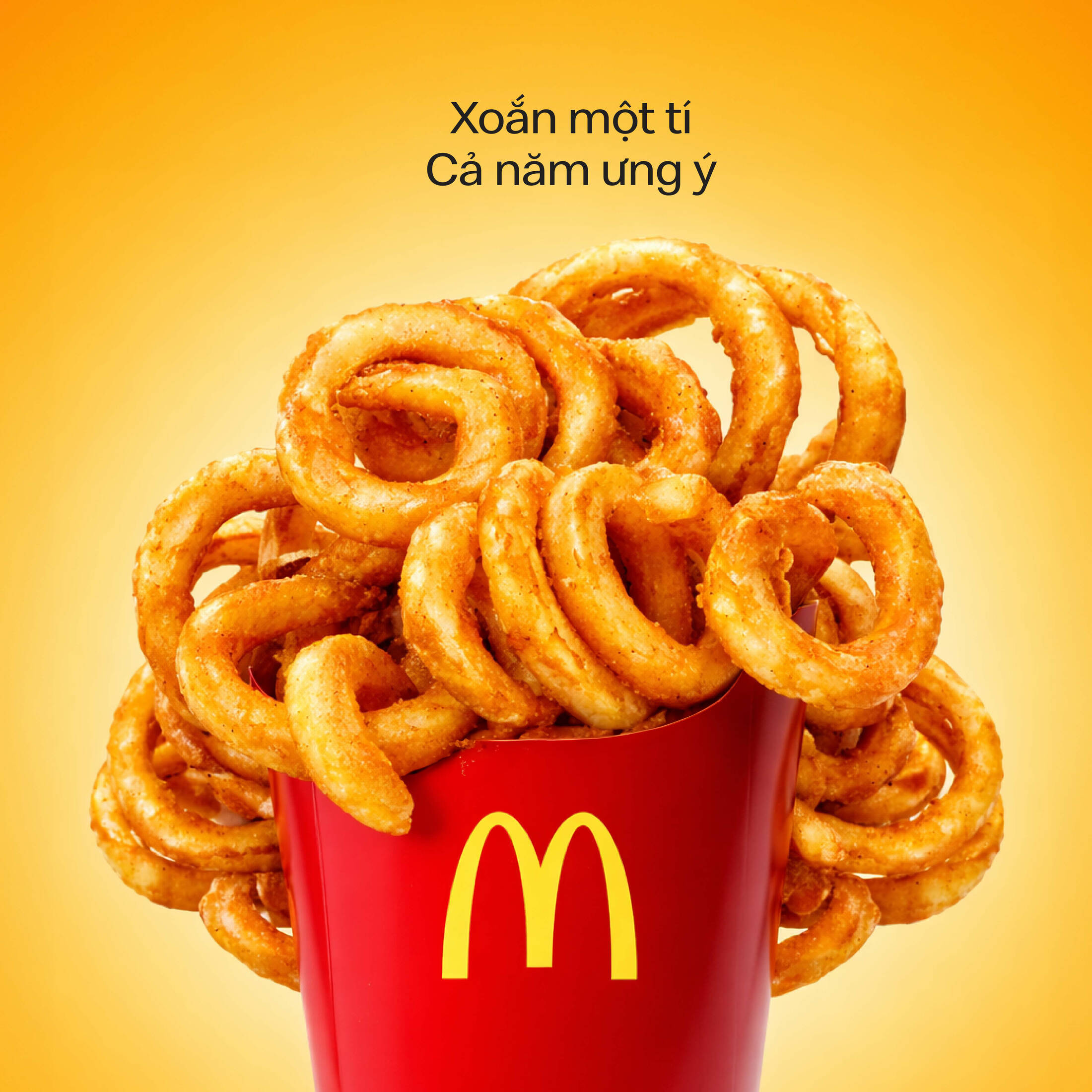 As Vietnamese New Year approaches, McDonald’s Vietnam brings back the Prosperity Combo, featuring its iconic curly fries that are available exclusively during the Tết season. Set against a golden yellow backdrop associated with luck and prosperity, the curly fries are playfully styled like a head of curls, symbolizing abundance, confidence, and feel-good energy for the year ahead. This ad turns a limited-time menu item into a modern icon of Tết celebration.