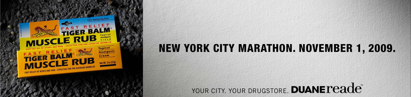 This professional campaign titled 'New York City Marathon, Pepto Bismol, Taxicab strike, New...' was published in United States in September, 2009. It was created for the brand: Duane Reade, by ad agency: Devito/Verdi. This Print medium campaign is related to the Pharmaceutical industry and contains 5 media assets. It was submitted over 16 years ago.