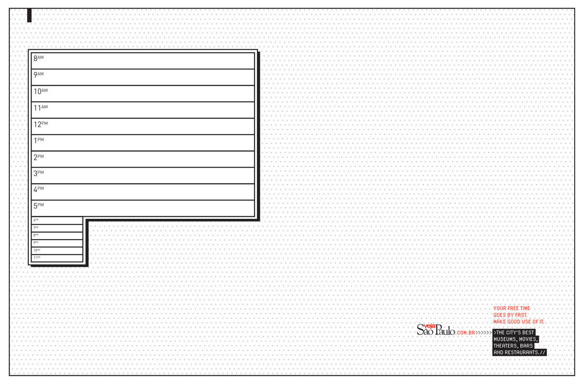 This professional campaign titled 'Night, Vacation, Weekend' was published in Brazil in October, 2007. It was created for the brand: Veja, by ad agency: BBDO. This Print medium campaign is related to the Media industry and contains 3 media assets. It was submitted about 18 years ago.
