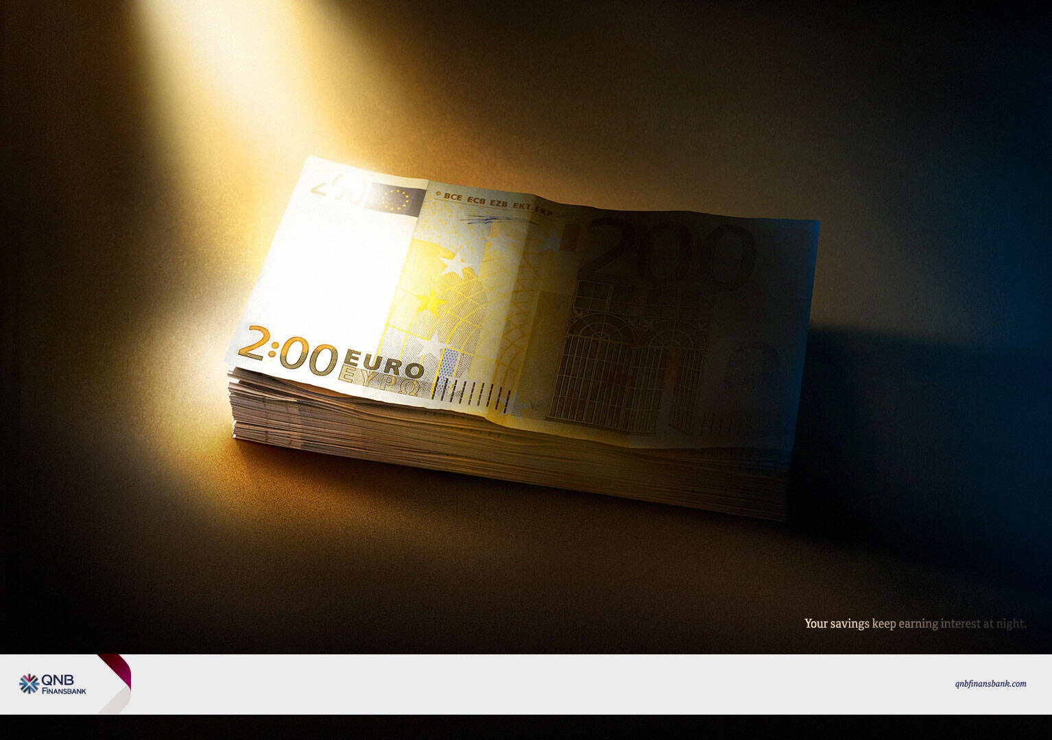 We prepared a press announcement on the deposit account of QNB Finansbank, which has the feature of interest at night. We made a reference to the night time as we put the symbol of dijital time writing between the numbers on the banknote.