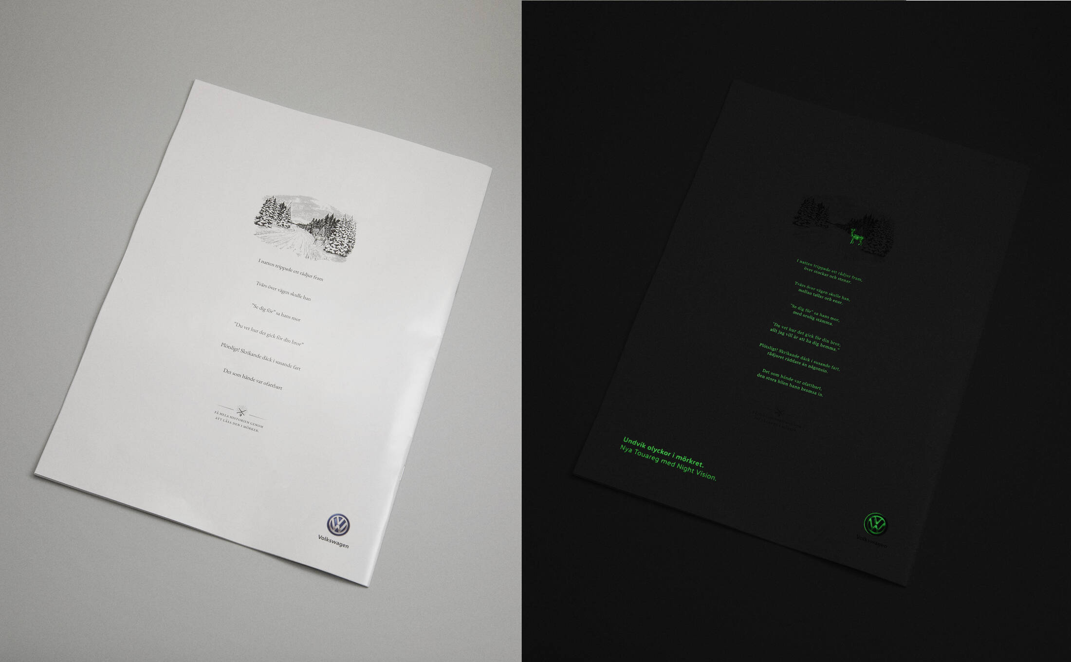 This professional campaign titled 'Night Vision Fairytale' was published in Sweden in January, 2019. It was created for the brand: Volkswagen, by ad agency: DDB. This Print medium campaign is related to the Automotive and Personal Transportation industry and contains 3 media assets. It was submitted almost 7 years ago.