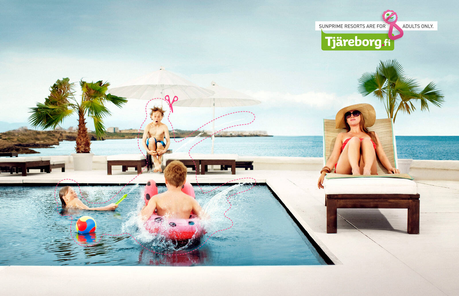 This professional campaign titled 'No kids, Pool, No kids, Dinner' was published in Finland in May, 2011. It was created for the brand: Tjäreborg, by ad agency: 358. This Print medium campaign is related to the Transport industry and contains 2 media assets. It was submitted over 14 years ago.