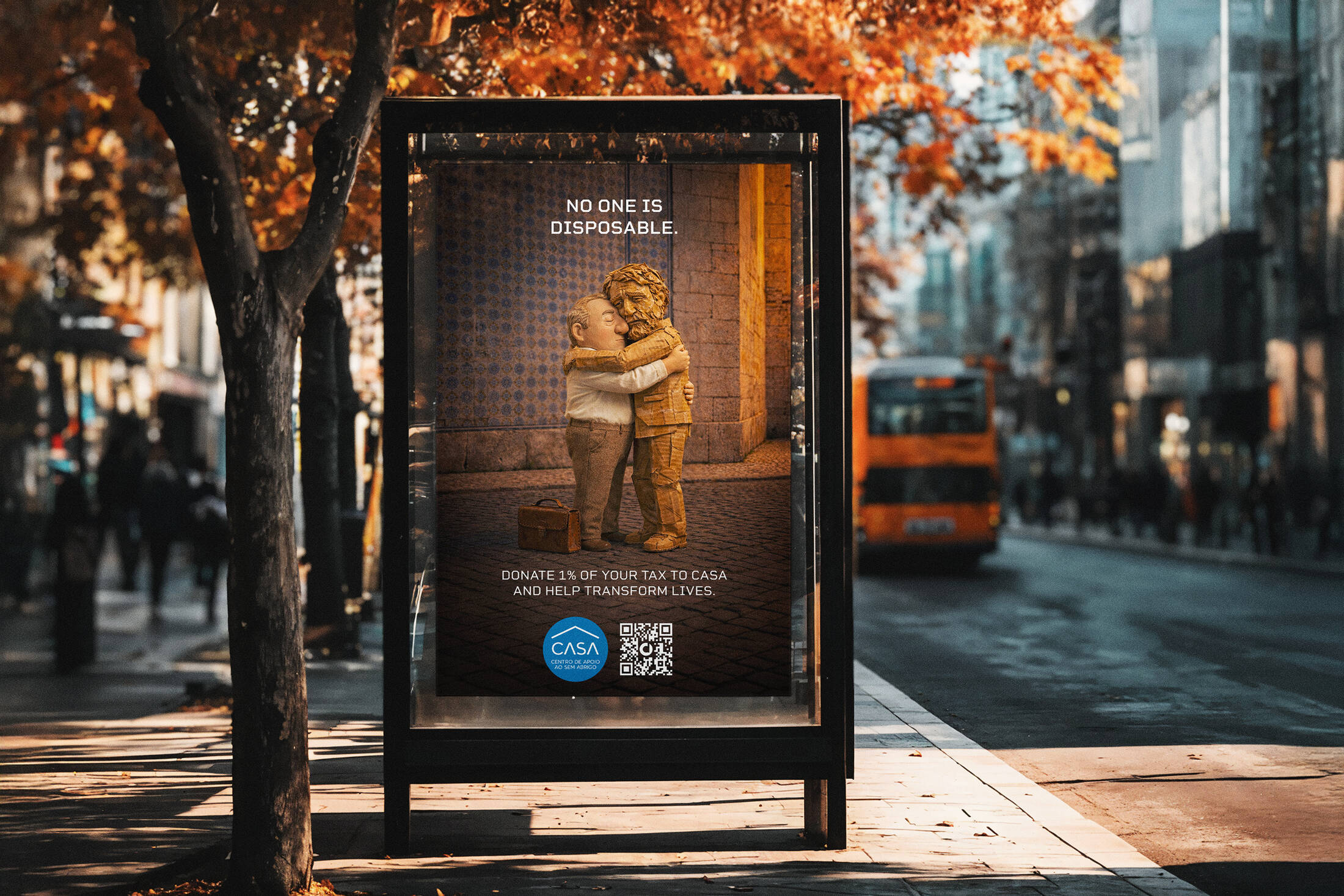 This professional campaign titled 'No One Is Disposable' was published in Portugal in March, 2026. It was created for the brand: CASA Centro de Apoio ao Sem Abrigo, by ad agency: Studio Nuts. This Film and OOH Outdoor media campaign is related to the Public Interest industry and contains 3 media assets. It was submitted about 3 hours ago by Creative Director: Tico Moraes of Nuts Studio.