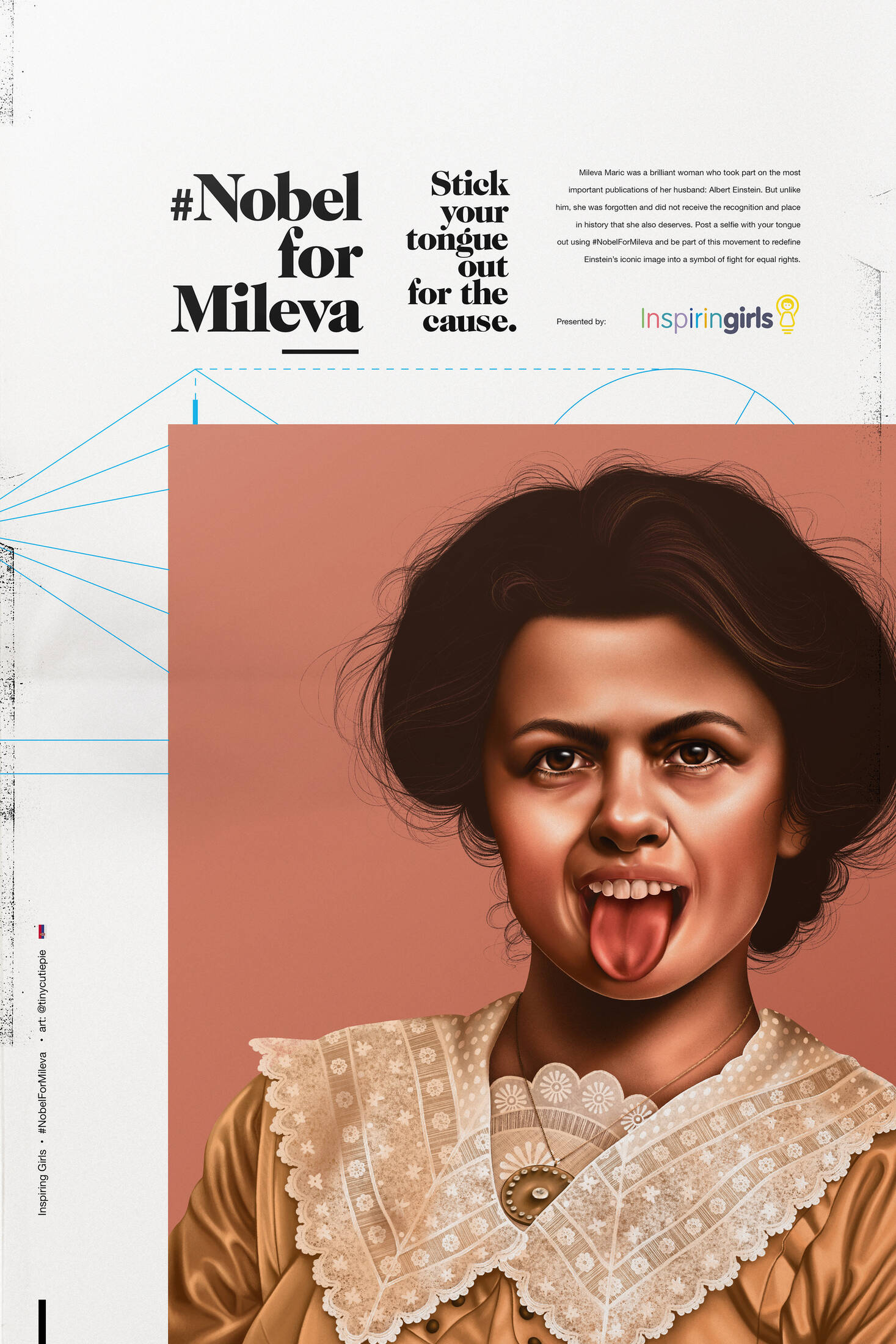 One of the actions to launch the campaign is a video on digital platforms with a brief history of Mileva Marić and an invitation for women and people of any gender identity to take selfies sticking their tongues out and then post them on social media, giving new meaning to the gesture that transformed Albert Einstein into a pop icon and representation of a genius. The gesture is the main symbol to represent the fight for equal rights.