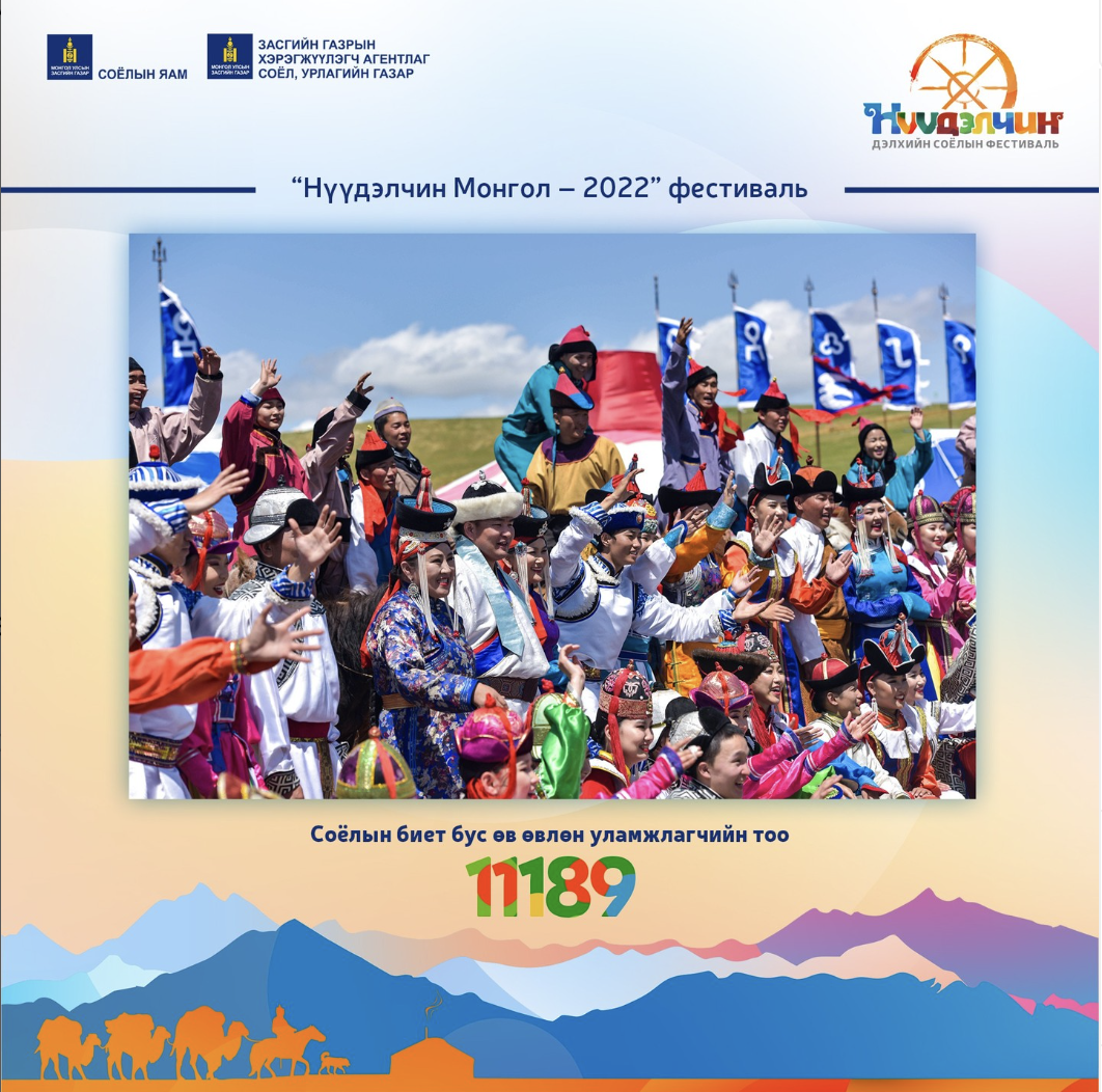 A total of 23,500 physical spectators came to the place called "Saihany Saravt" in the Gorkhi-Terelj Nature Park, the campaign site. The average time spent per person was 5 hours. The method, 1283 inheritors, 1283 inheritors, 6780 people transported by carts, 6780 people transported by carts, 135 migration events, foreigner tourism, migration culture academic research. As a result of the campaign, information reached 3,600,000 people.