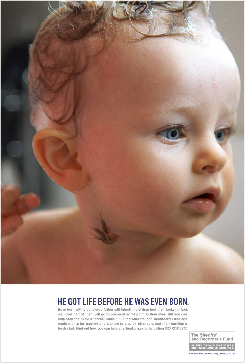 This professional campaign titled 'Noose, Baby' was published in United Kingdom in May, 2009. It was created for the brand: The Sheriffs' and Recorder's Fund, by ad agency: Euro RSCG. This Print medium campaign is related to the Public Interest industry and contains 2 media assets. It was submitted over 16 years ago.