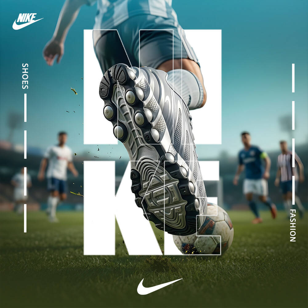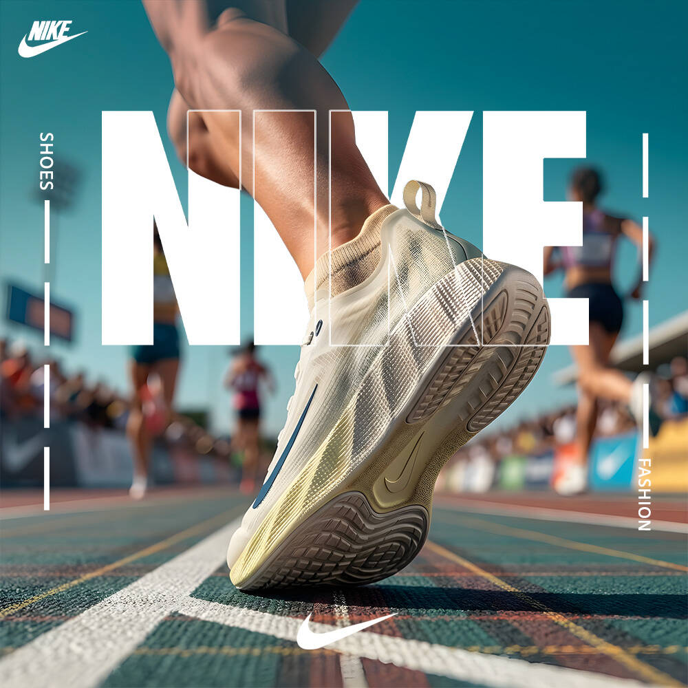 Visually, the campaign uses bold typography and layered compositions to integrate the Nike identity within the movement itself. The cropped “NIKE” lettering acts as both a framing device and a visual rhythm that enhances motion rather than interrupting it.