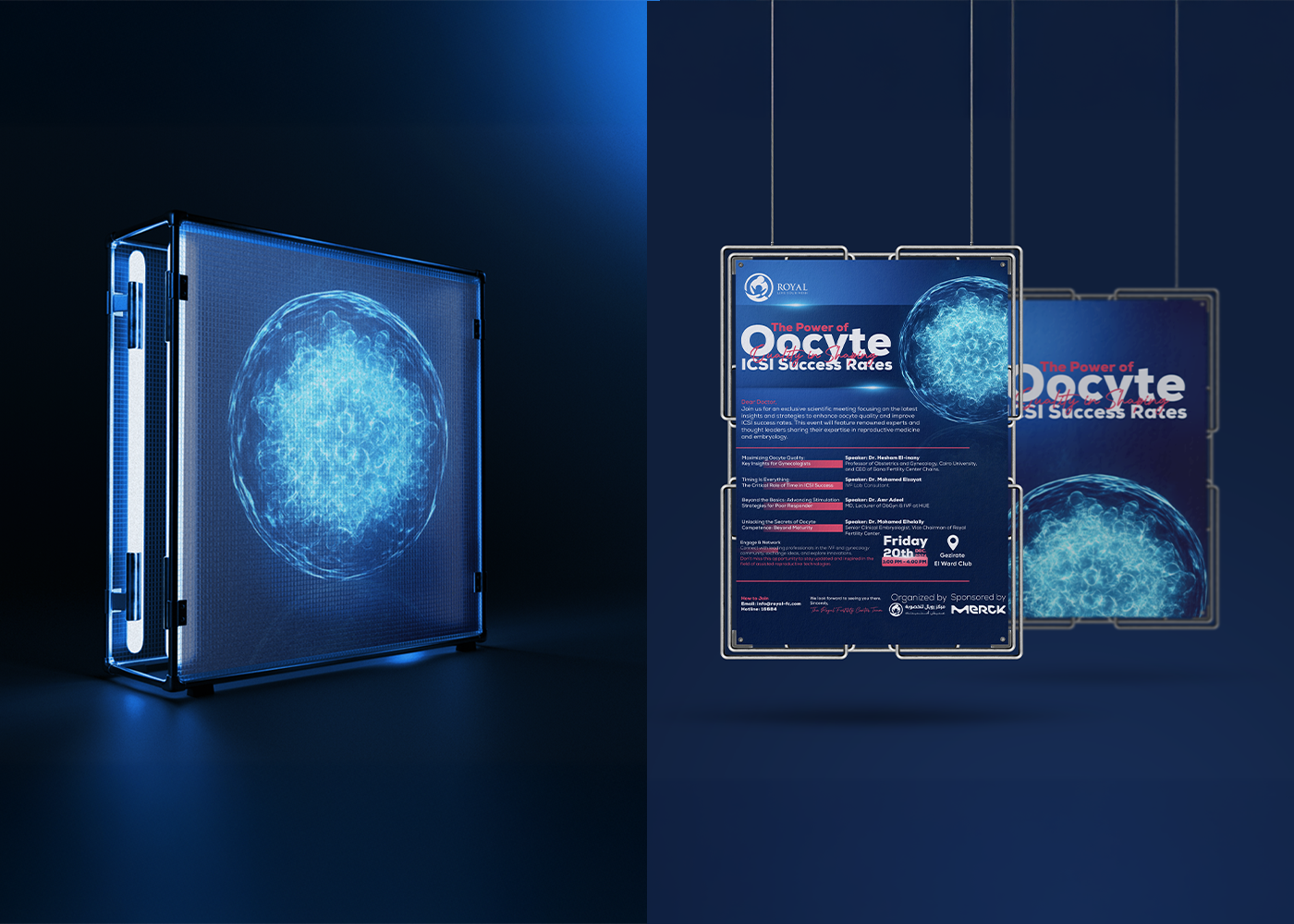 Extended across all touchpoints, from digital announcements to on-ground signage, the identity is built to scale. Through this flexible system, Marklinica ensures the conference adapts to future workshops and regional collaborations, giving the Royal Fertility Center a distinct, authoritative signature within the medical events landscape.