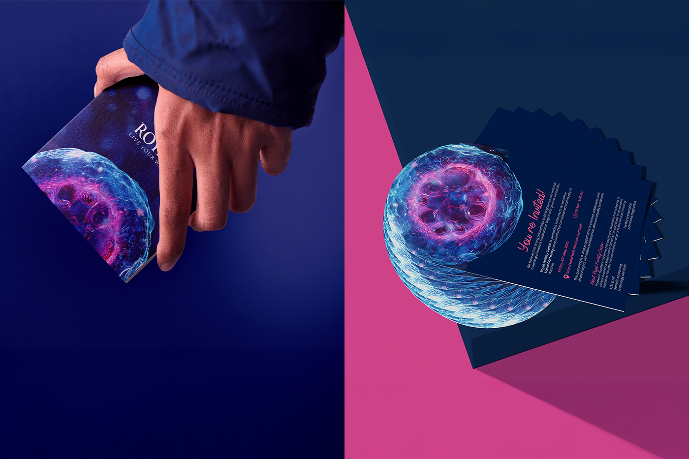 Royal Fertility Center introduced a refreshed visual identity for its IVF conference series to establish a clearer academic presence. Created by Marklinica, the new system moves away from familiar medical clichés, instead building the identity from the actual logic of reproductive science.