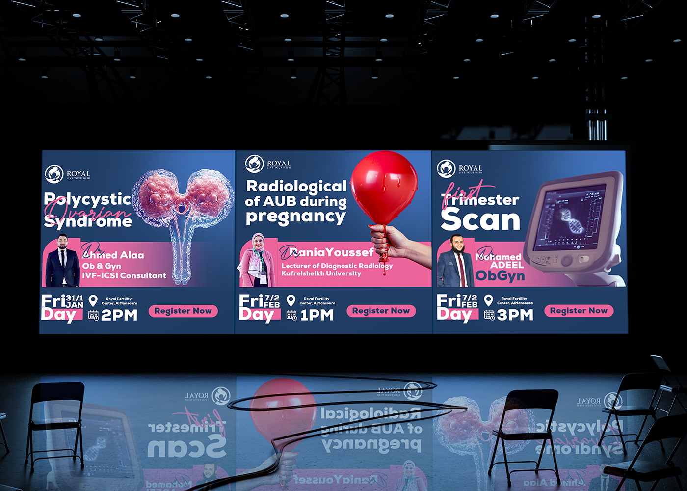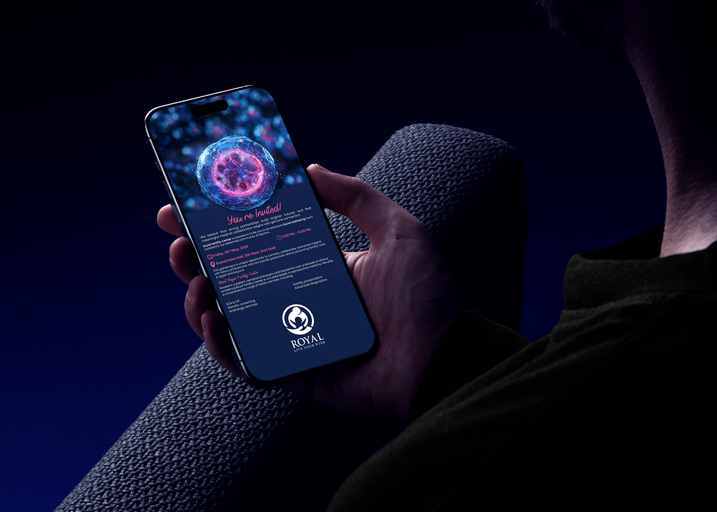 This professional campaign titled 'Not just an Identity. It’s a Royal Code for Conferences.' was published in Egypt in May, 2025. It was created for the brand: Royal Fertility Center, by ad agency: Marklinica. This 360°, Content, and Design media campaign is related to the Health industry and contains 10 media assets. It was submitted 2 months ago by CEO : Rana Mohsen of Marklinica Agency.