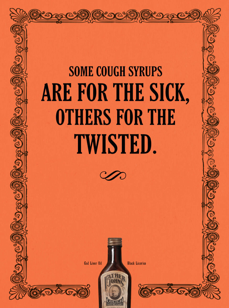 This student campaign titled 'Not your basic mixed berry cough syrup' was published in United States in November, 2019. It was created for the brand: Father John's Cough Syrup, by ad school: Southern Methodist University. This Integrated medium campaign is related to the Health and Pharmaceutical industries and contains 4 media assets. It was submitted about 6 years ago.