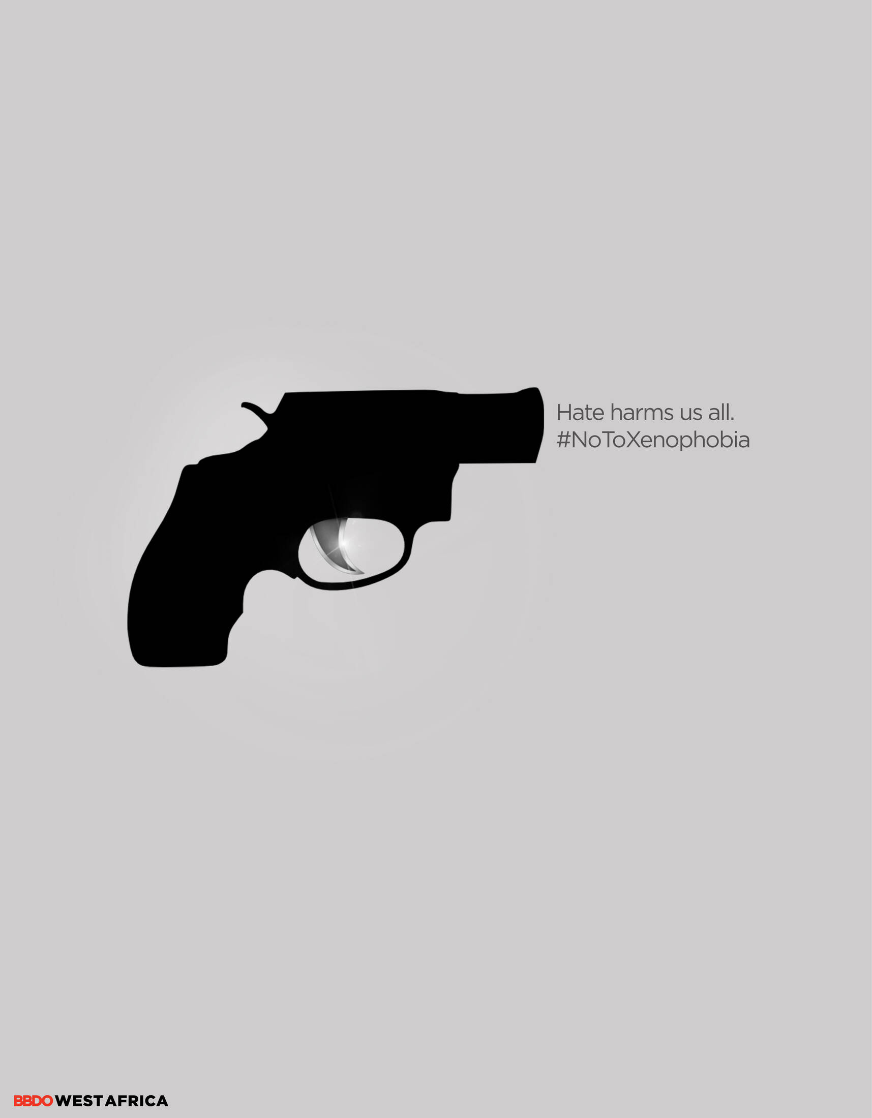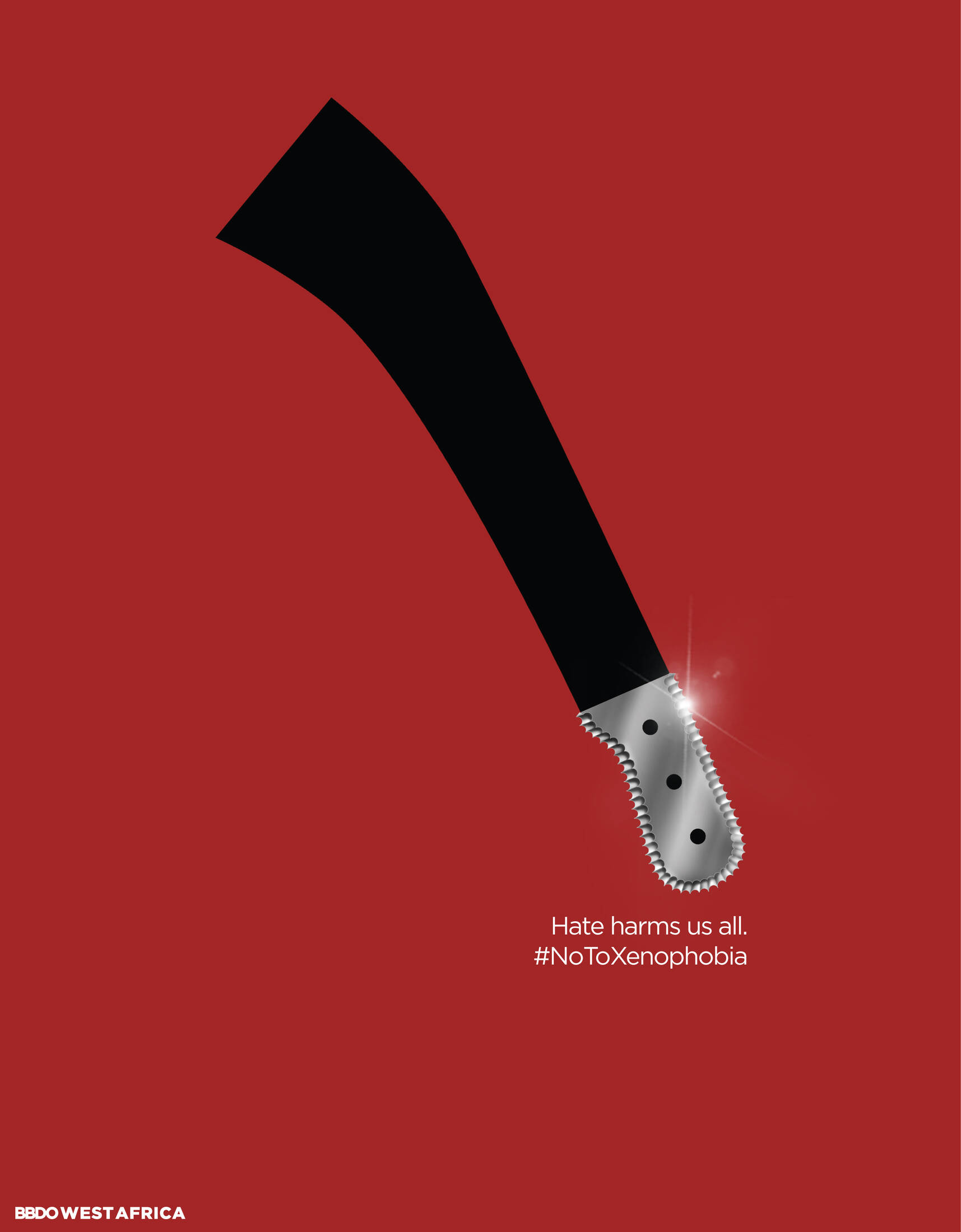 This professional campaign titled '#NoToXenophobia' was published in Nigeria in September, 2019. It was created by ad agency: BBDO. This Print medium campaign is related to the Agency Self-Promo industry and contains 2 media assets. It was submitted about 6 years ago.