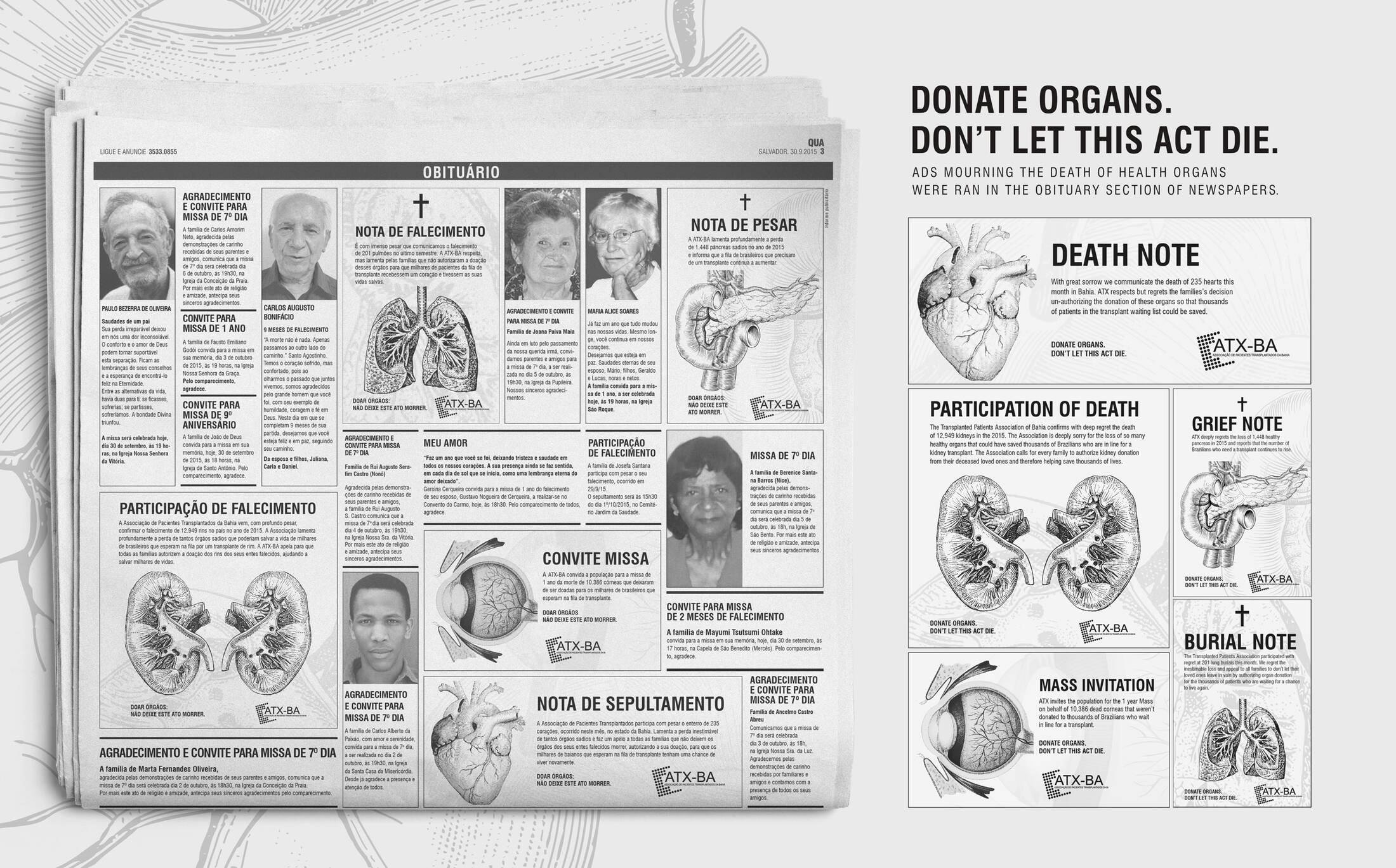 This professional campaign titled 'Obituary' was published in Brazil in October, 2015. It was created for the brand: ATX Bahia, by ad agency: Propeg. This Print medium campaign is related to the Public Interest industry and contains 1 media asset. It was submitted about 10 years ago.