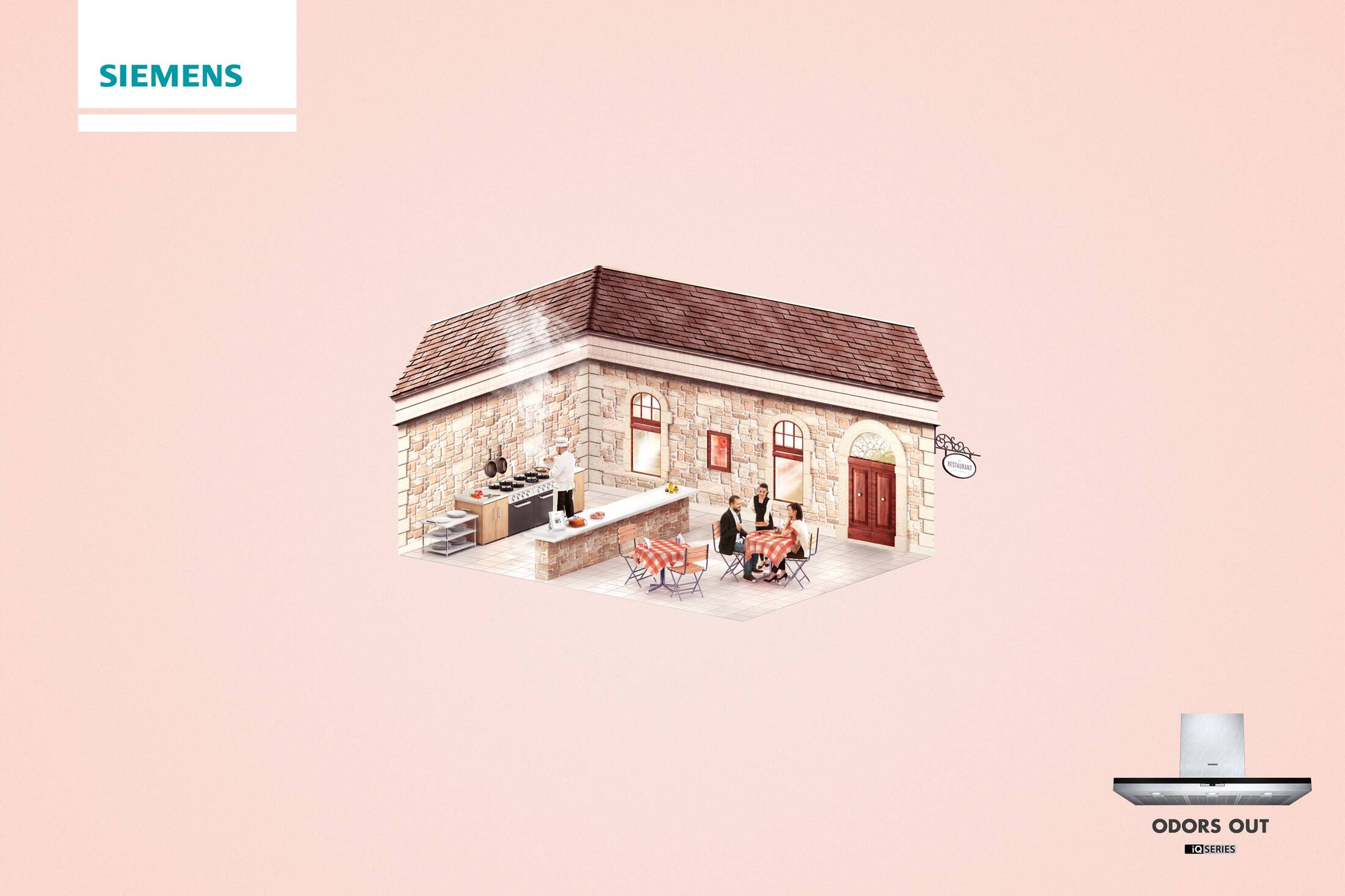 This professional campaign titled 'Odors Out - snack bar, Odors Out - restaurant, Odors Out ...' was published in Turkey in April, 2015. It was created for the brand: Siemens, by ad agency: DDB. This Print medium campaign is related to the Electronics, Technology industry and contains 3 media assets. It was submitted over 10 years ago.