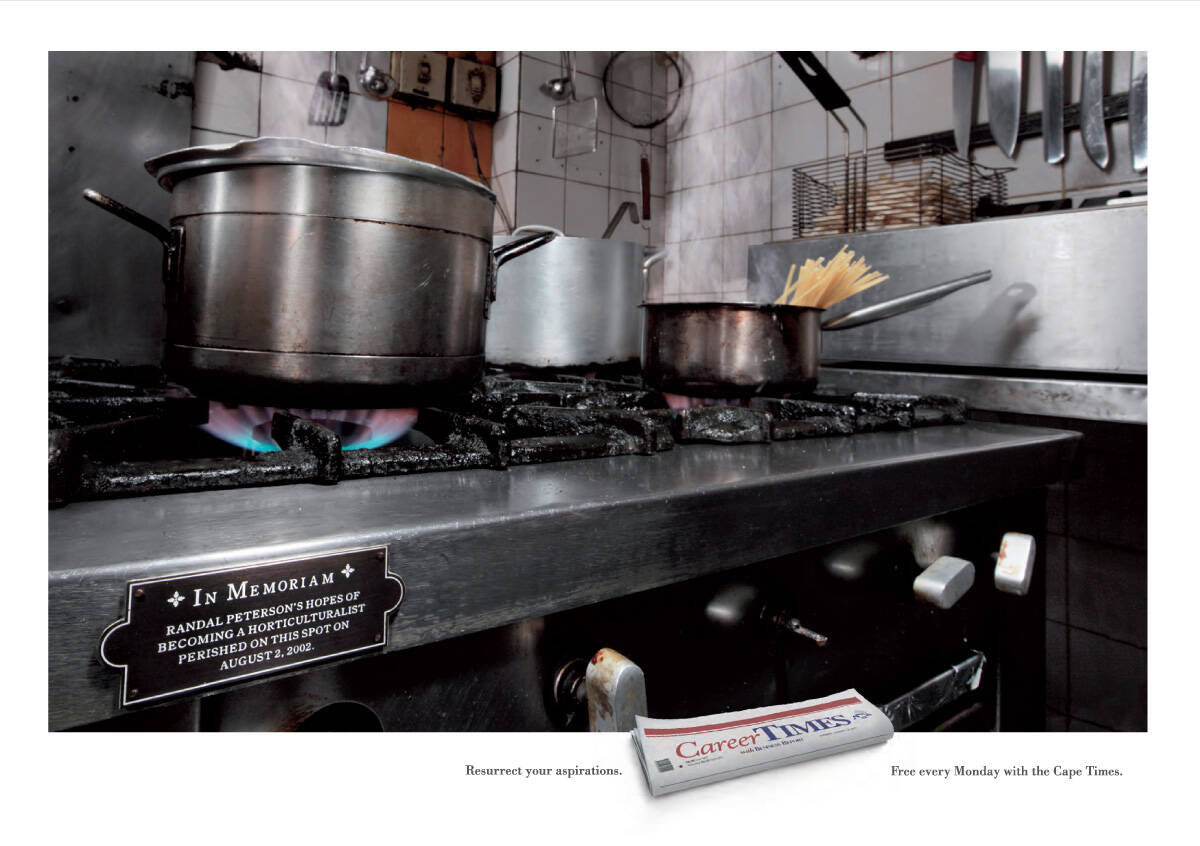 This professional campaign titled 'Office, School, Kitchen' was published in South Africa in May, 2010. It was created for the brand: Career Times, by ad agency: Lowe. This Print medium campaign is related to the Media industry and contains 3 media assets. It was submitted over 15 years ago.