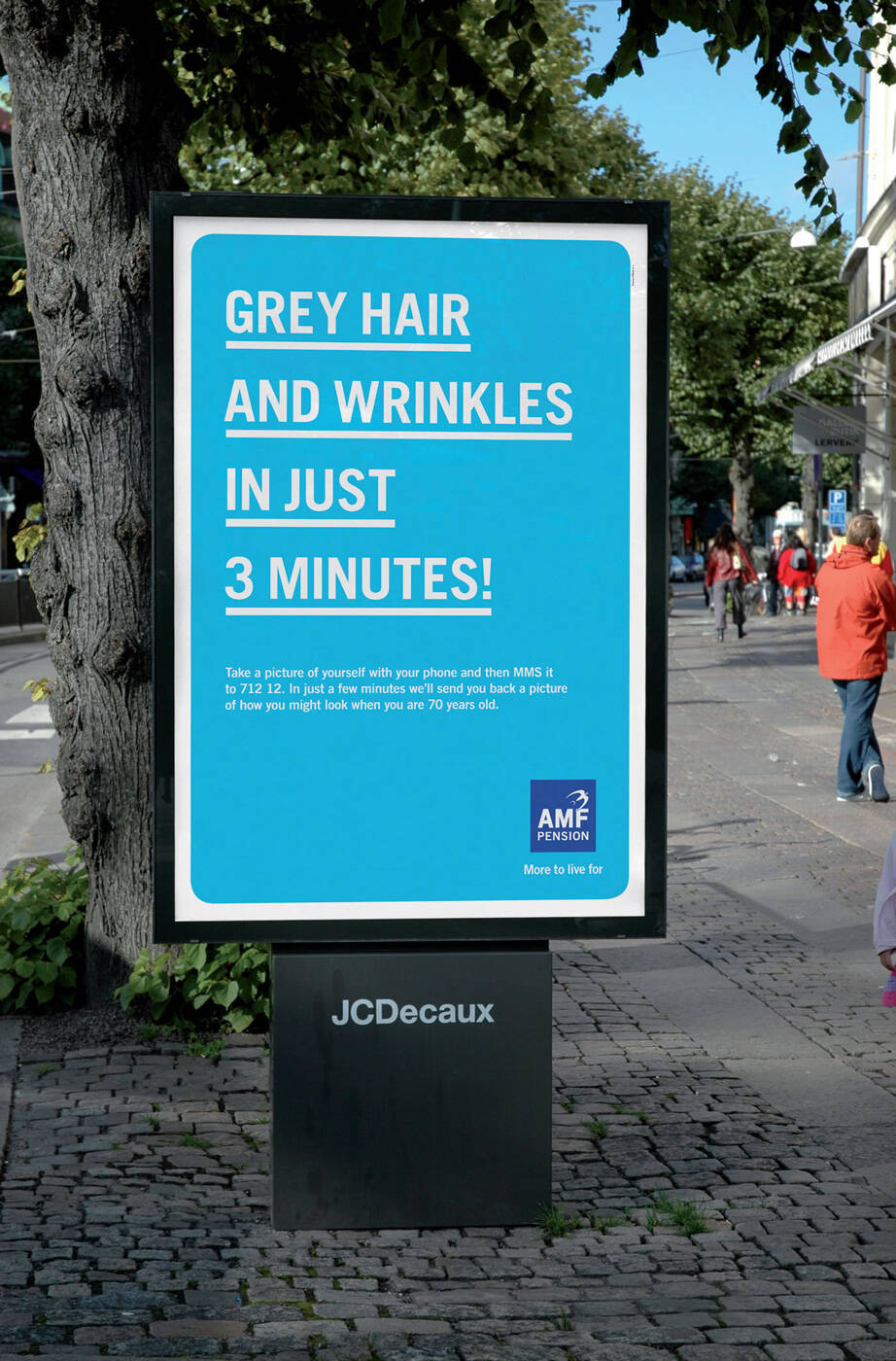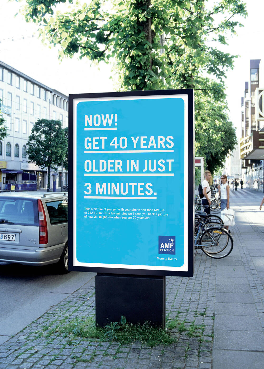 This professional campaign titled 'Old' was published in Sweden in December, 2008. It was created for the brand: AMF Pension, by ad agency: Forsman & Bodenfors. This OOH Outdoor medium campaign is related to the Finance industry and contains 4 media assets. It was submitted almost 17 years ago.