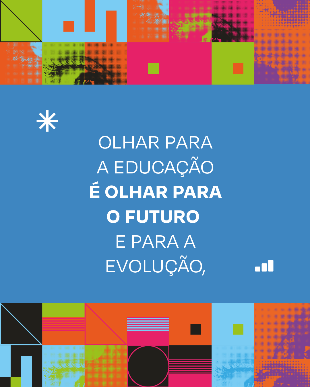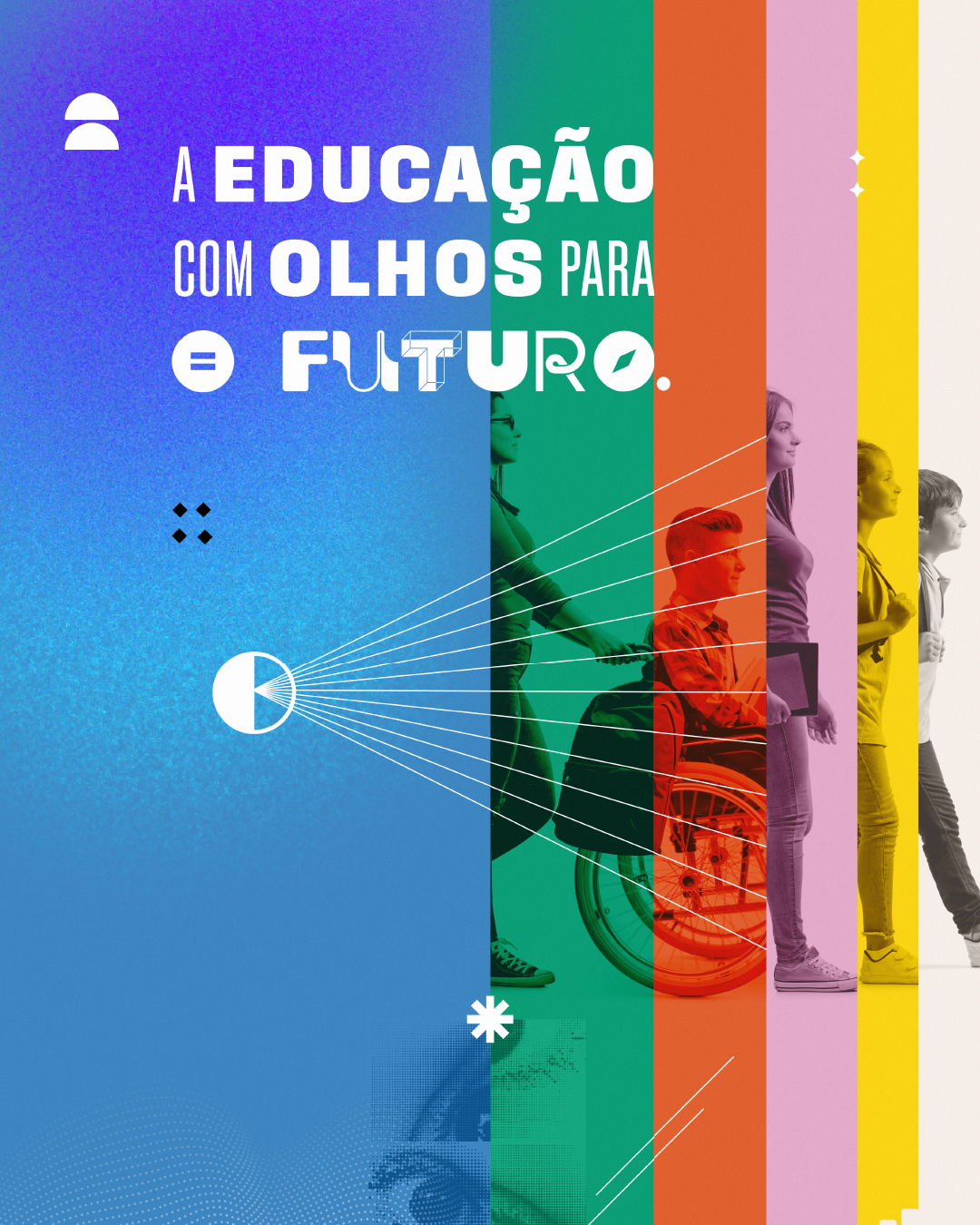 The key visual created to publicize the 19th National Forum of Municipal Education Directors. The objective of the forum is to debate the current scenarios and challenges facing Brazilian public education for the next decade. To achieve this, we created the concept “Education with an eye to the future”.