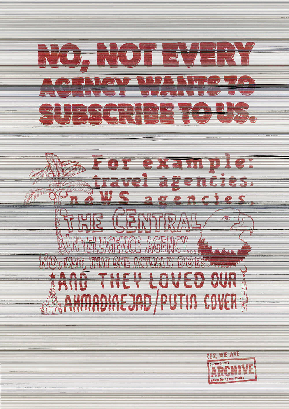 This professional campaign titled 'On the contrary' was published in Lithuania in April, 2013. It was created for the brand: Lurzers Archive, by ad agency: Milk. This Print medium campaign is related to the Media industry and contains 8 media assets. It was submitted over 12 years ago.